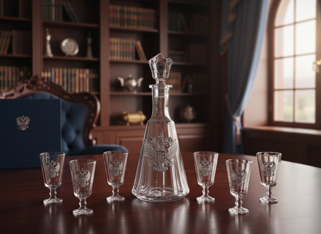 Уникальность комплекта очевидна: все предметы, а это графин емкостью 750 мл и шесть рюмок, изготовлены из хрусталя традиционной рецептуры с содержанием 24% окиси свинца. Необыкновенная прозрачность, неповторимая игра света, обусловленная высоким показателями преломления, а также прочность, несравнимая с обычным стеклом - те качества, благодаря которым хрусталь на несколько ступеней опережает другие материалы для изготовления посуды в своей классификации. Именно поэтому его стоимость на порядок выше, и это оправданно.