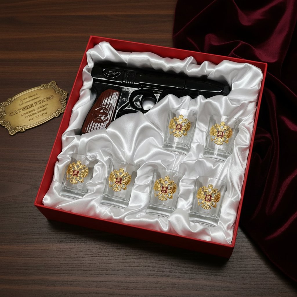 Мальчики практически в любом возрасте обожают оружие. Они готовы сжимать в руке пистолет даже в минуты праздничного застолья. Особенно если этот пистолет представляет собой оригинальный штоф для веселящего душу крепкого напитка!