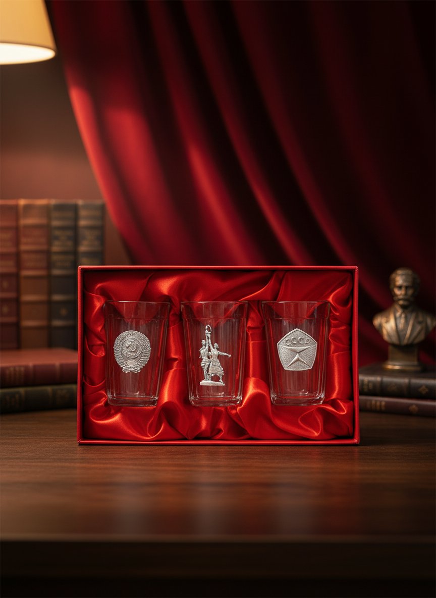 Набор гранёных стаканов «Советский стандарт» вполне способен вызвать улыбку, скупую мужскую слезу или и то, и другое вместе у вашего супруга, отца, деда, друга, коллеги. Он состоит из трех стеклянных емкостей вместимостью 250 миллилитров, форма которых так хорошо знакома тем, кто родился и вырос в СССР.
