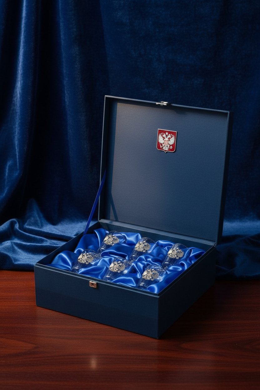 Таким образом, набор лафитников «Держава» - это оригинальная, дорогая и интересная идея для подарка любому виновнику торжества, уважающему крепкий алкоголь, и любящему употреблять его из качественной посуды.