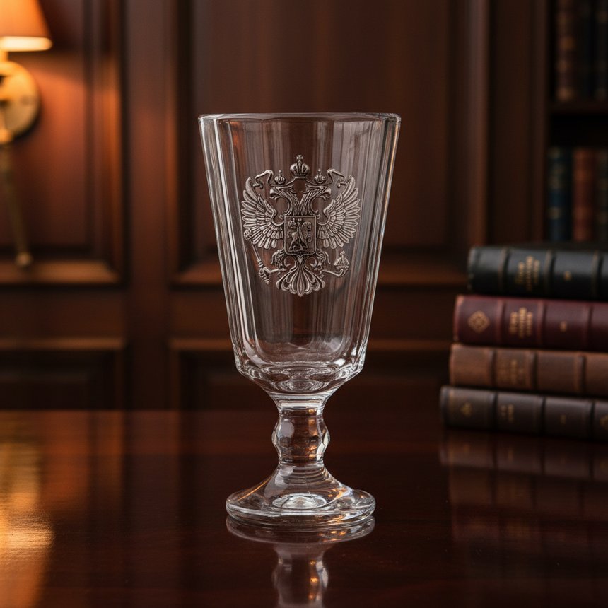 Помимо качественных составляющих хорошая посуда должна быть интересно оформлена. В данном случае производитель выбрал патриотическую тему, разместив на стенках каждого лафитника изображение двуглавого орла. Но суть даже не в картинке, а в том, каким образом она нанесена на сосуд. Это оловянный барельеф, формируемый вручную. На хрусталь он накладывается под высоким давлением, что позволяет прочно закрепить декоративный элемент на поверхности. Узор украшен чернением, что придаёт ему сходства с антикварным серебром и делает внешний вид посуды ещё более богатым и интересным. Мастера тщательно проработали каждую мельчайшую деталь, вдохновляясь оригинальным российским гербом.