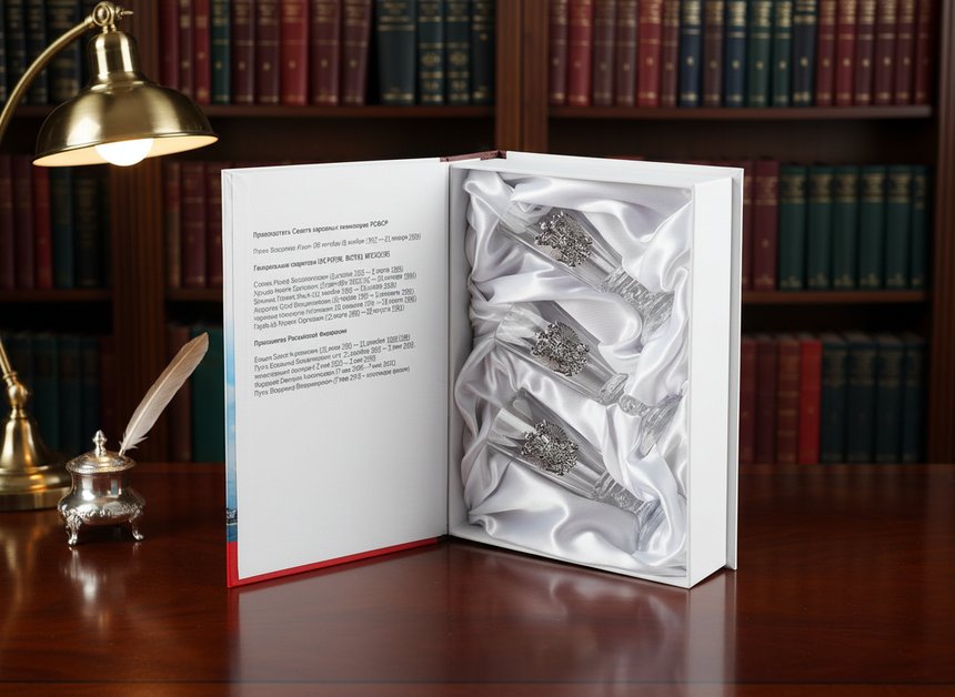 | Упаковка | Подарочная коробка в виде книги класса «Люкс» из картона с имитлином и ложементом. |