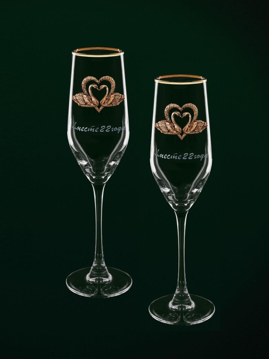 ✓ наборы фужеров для шампанского и бокалов для вина - это ещё одна отличный подарок на годовщину свадьбы. Наборы: «Вместе 9 лет», «25 лет вместе», «30 лет вместе» и т.д., состоящие из двух фужеров/бокалов, изготовленных из высококачественного стекла кристальной прозрачности и повышенной прочности, на которых выгравирована дата годовщины и детализированное изображение двух сердец или пары лебедей, исполняющих танец любви, наверняка, придутся по вкусу обоим виновникам торжества.