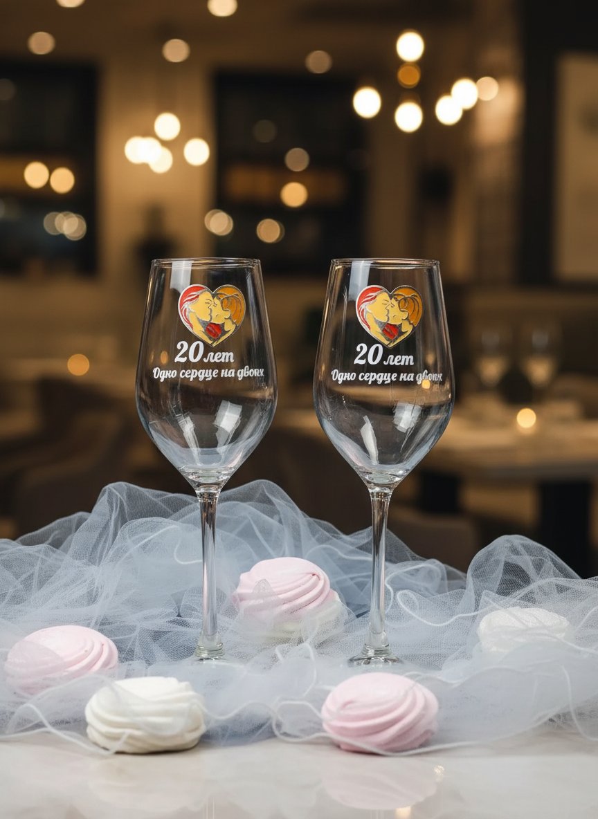 Набор бокалов для вина «20 лет - фарфоровая свадьба»
