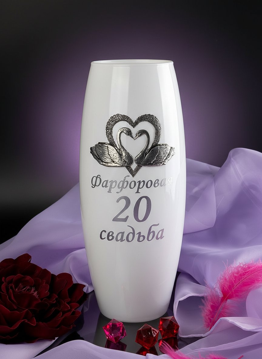 Стеклянная ваза «Фарфоровая свадьба - вместе 20 лет»
