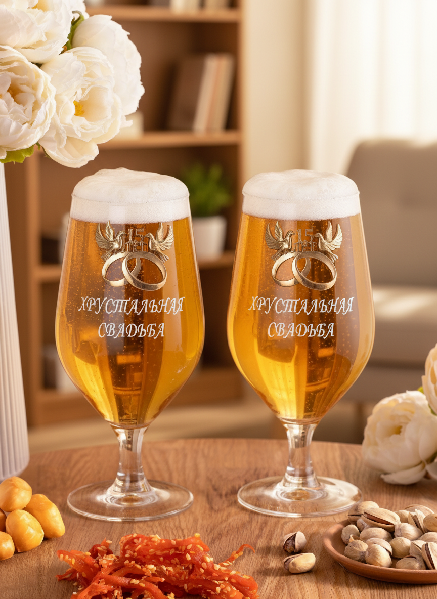 Набор пивных бокалов «Хрустальная свадьба»