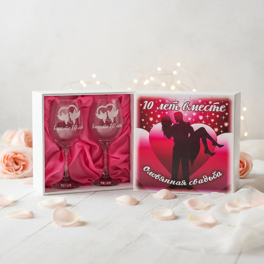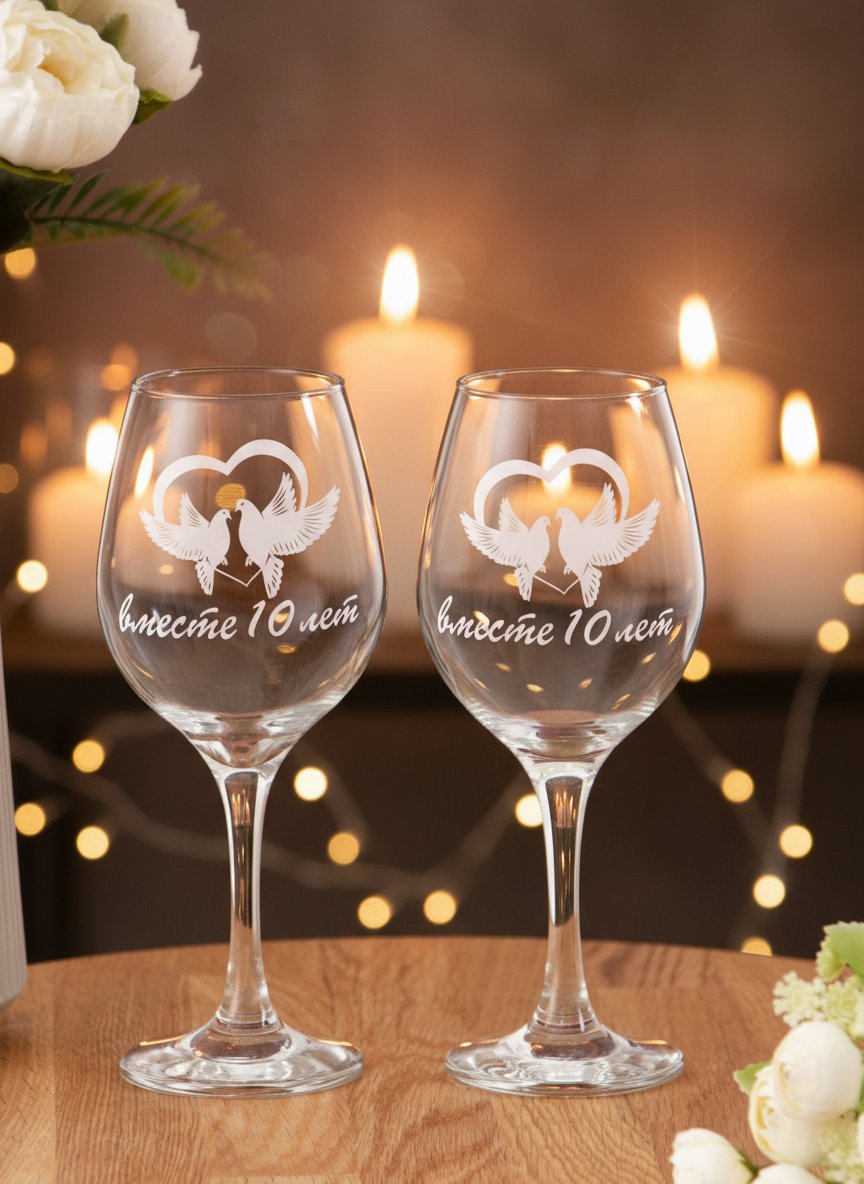Набор бокалов для вина с деколью 10 лет вместе