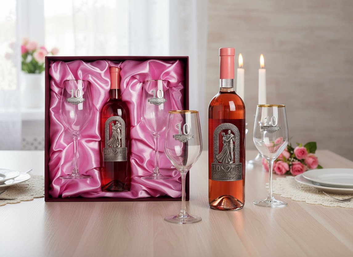 - Набор бокалов с местом под бутылку 10 лет вместе