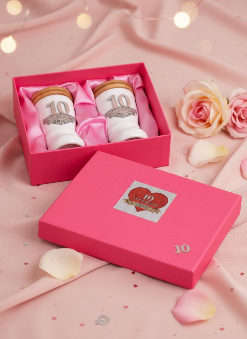 Юбилейный набор станет впечатляющим презентом для семейной пары в день их «оловянной» свадьбы. И будет многие годы напоминать виновникам торжества об этом событии.