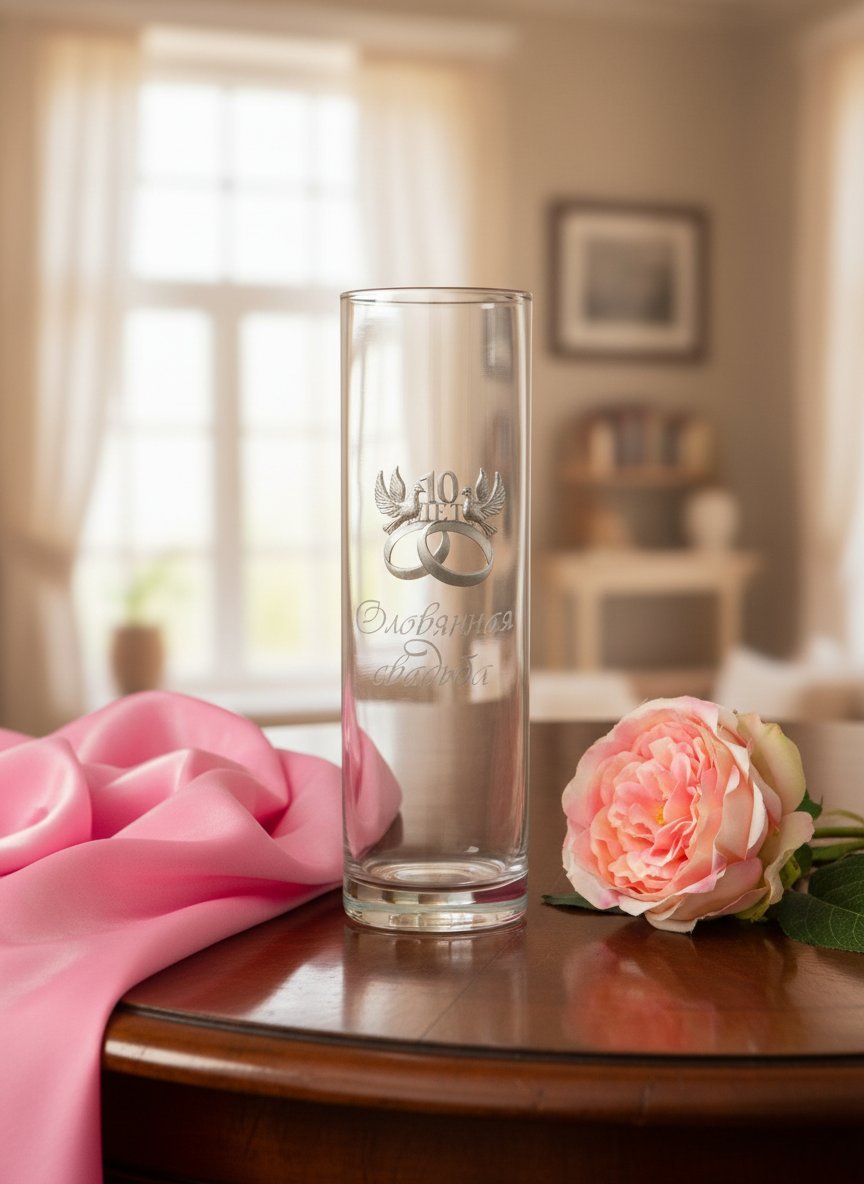 Стеклянная ваза 10 лет счастья