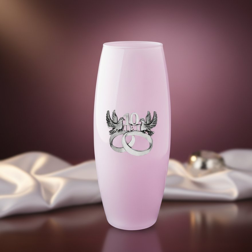 Стеклянная ваза «10 лет вместе» — символичный презент, с помощью которого можно оставить в памяти столь знаменательную юбилейную дату и доказать одариваемым, насколько вы уважаете их союз.