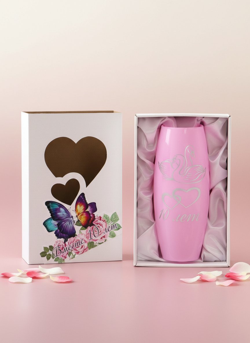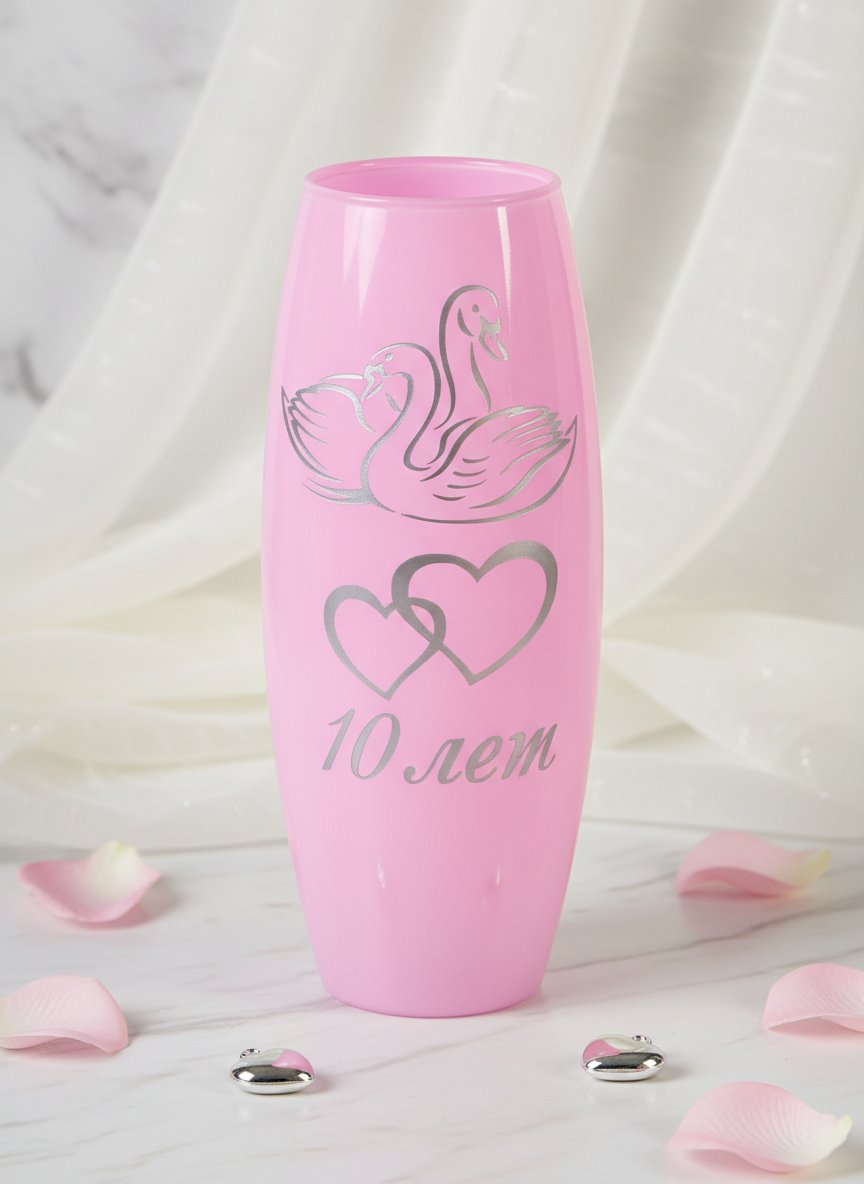 Семейная жизнь длиною в 10 лет — повод для гордости супругов, ведь столько пройдено вместе, столько пережито. Эту юбилейную годовщину свадьбы принято называть розовой. Роза с шипами символизирует трудности, которые уже преодолели супруги в браке. Традиционно в этот день принято дарить презенты в розовом цвете и, конечно же, цветы. Интернет-магазин «Подарки от Михалыча» приготовил роскошное подношение по такому случаю, которое в этот же вечер станет палочкой-выручалочкой для семейной четы. Вашему вниманию: стеклянная ваза «Розовая свадьба».