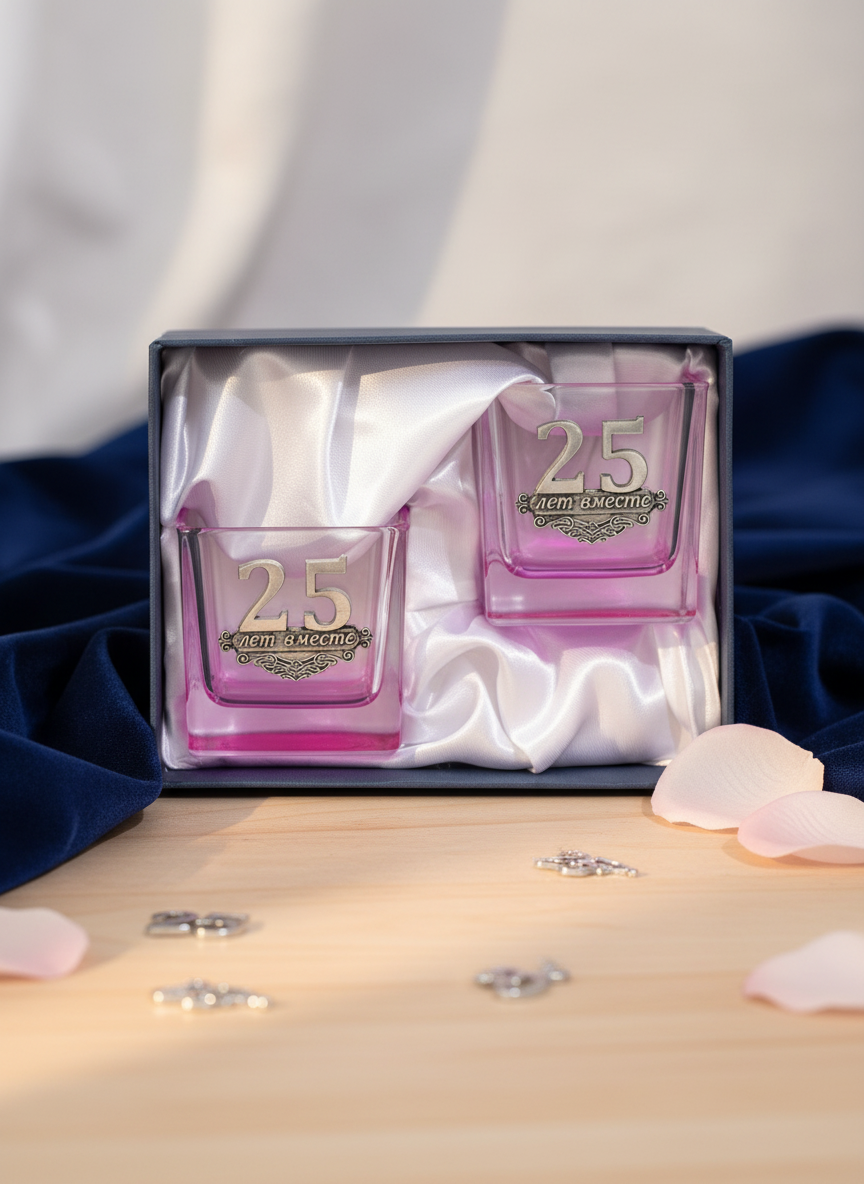 Набор розовых подсвечников «25 лет вместе»