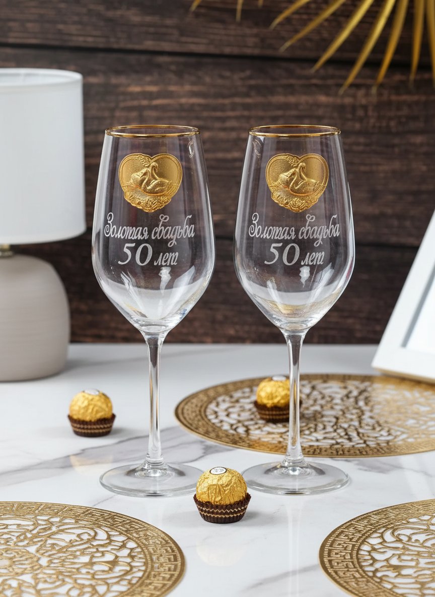 Набор бокалов для вина Золотая свадьба - 50 лет счастья