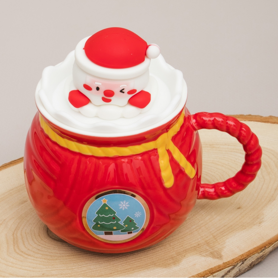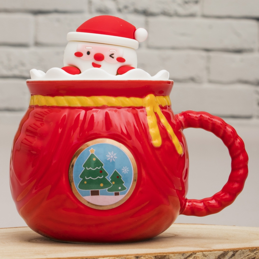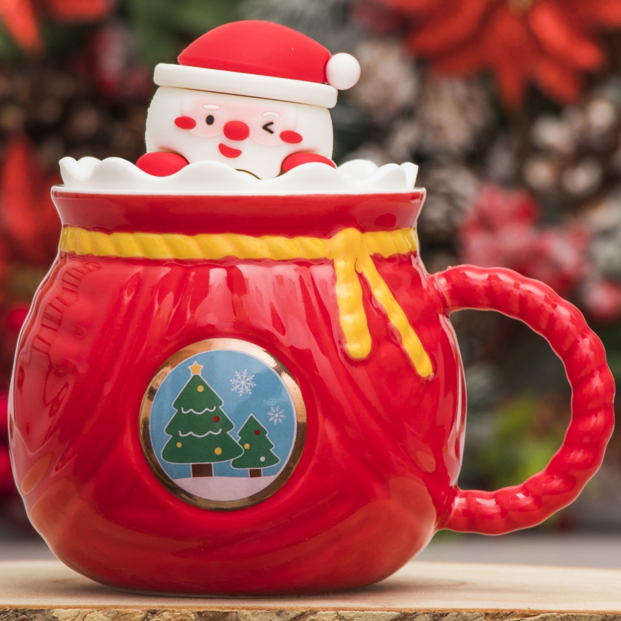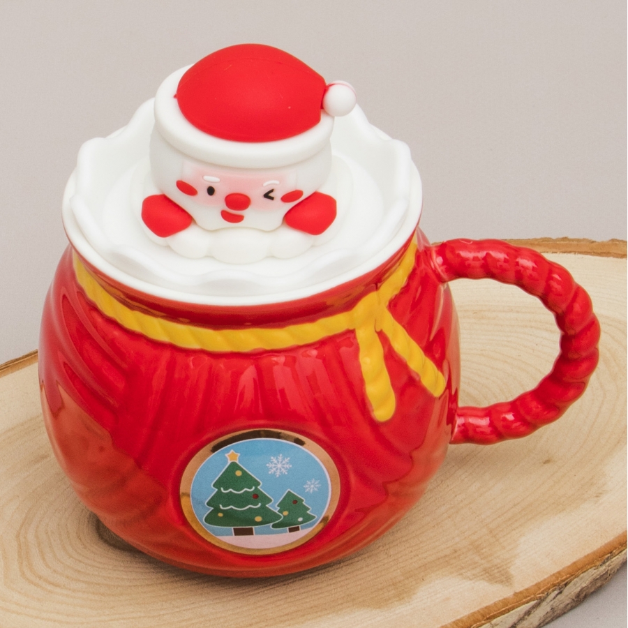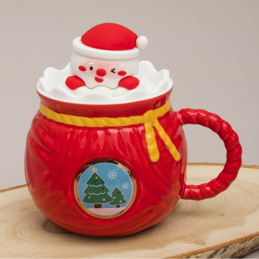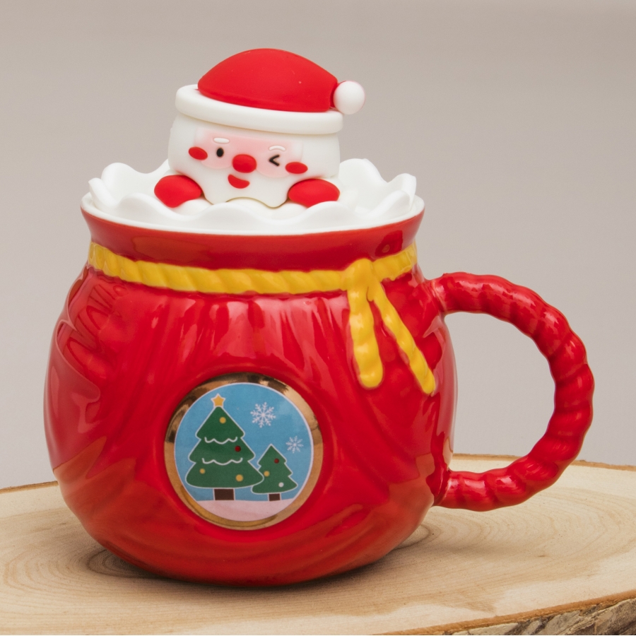 Кружка с крышкой «Дед Мороз с мешком подарков»
