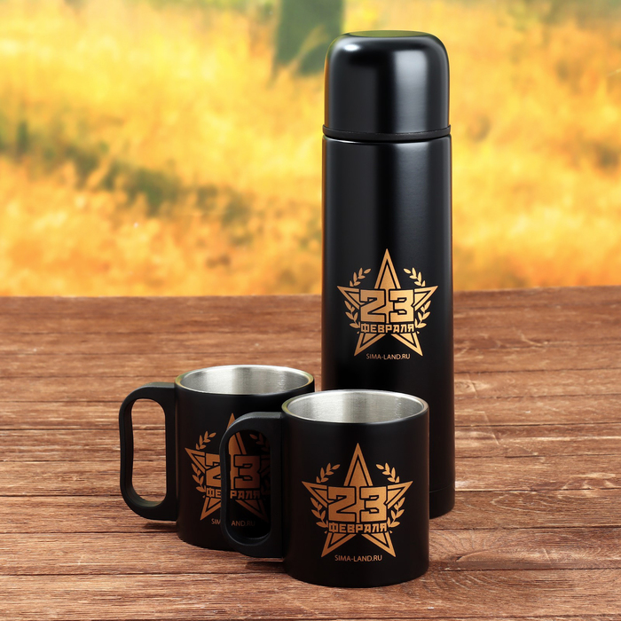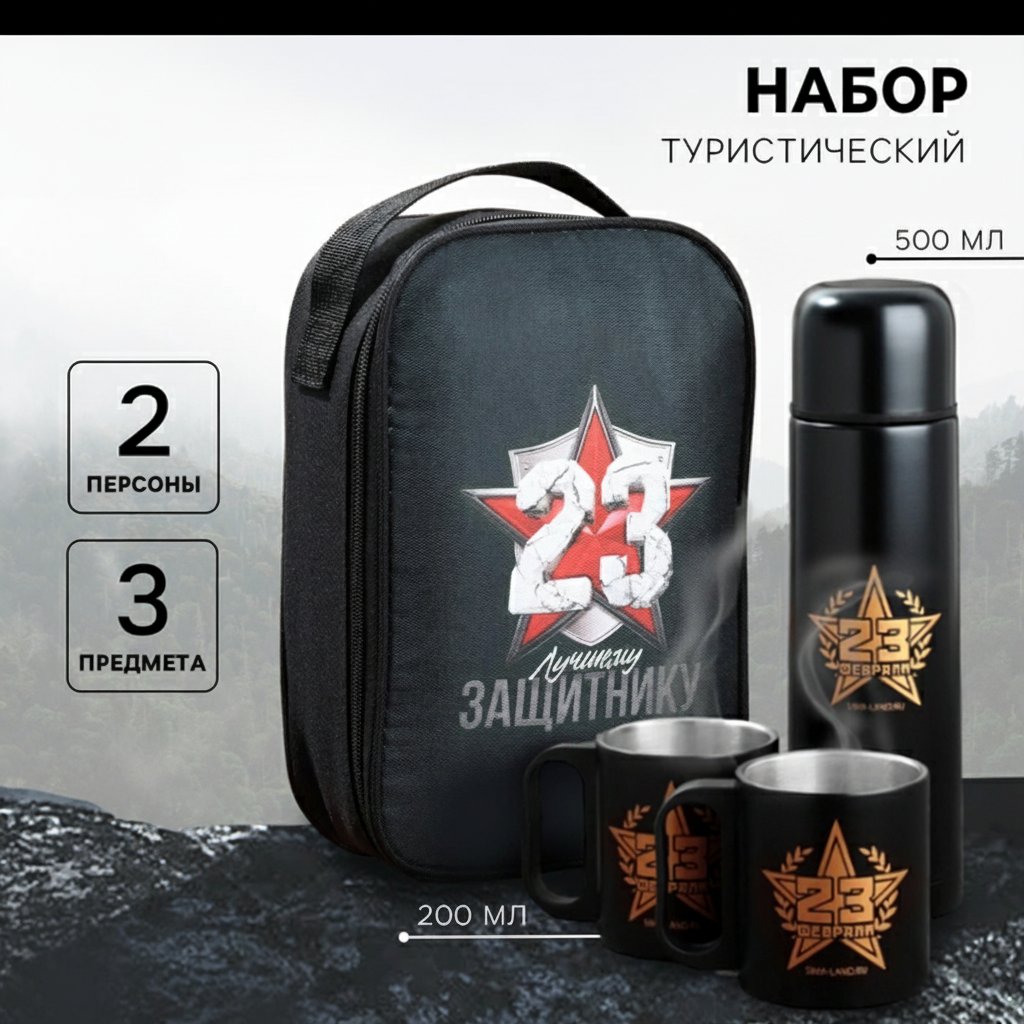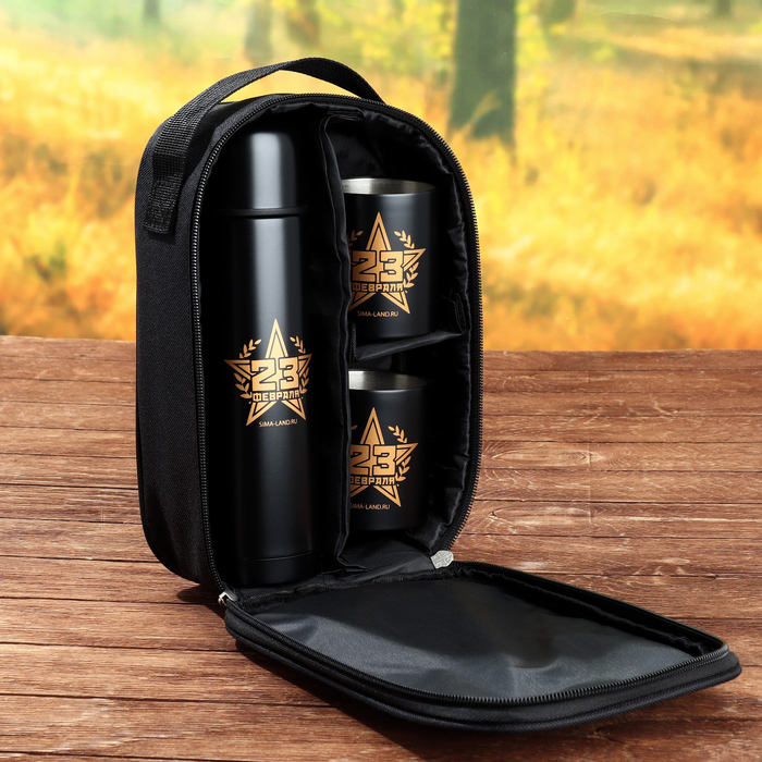 | Комплектация | - термос из нержавеющей стали объёмом 500 мл; - две кружки из нержавеющей стали по 200 мл; - сумка. |