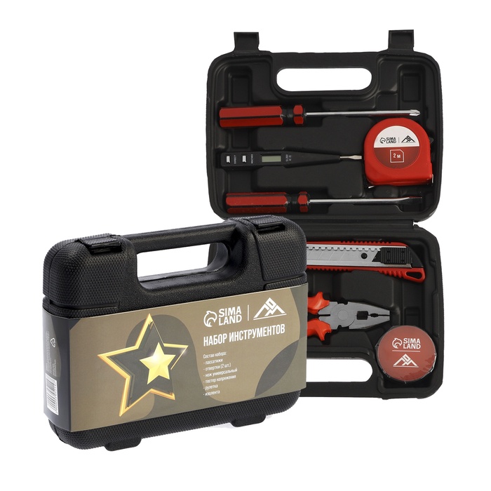 | Составляющие набора | Плоскогубцы, Рулетка, Нож, Тестер |