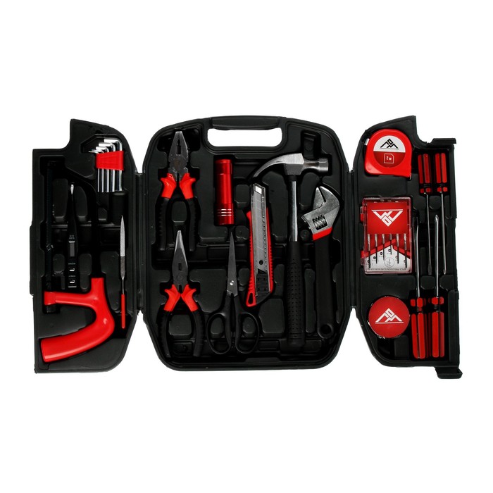 | Составляющие набора | Разводной ключ, Рулетка, Тестер, Плоскогубцы, Фонарь, Длинногубцы, Шестигранные ключи, Ножницы |