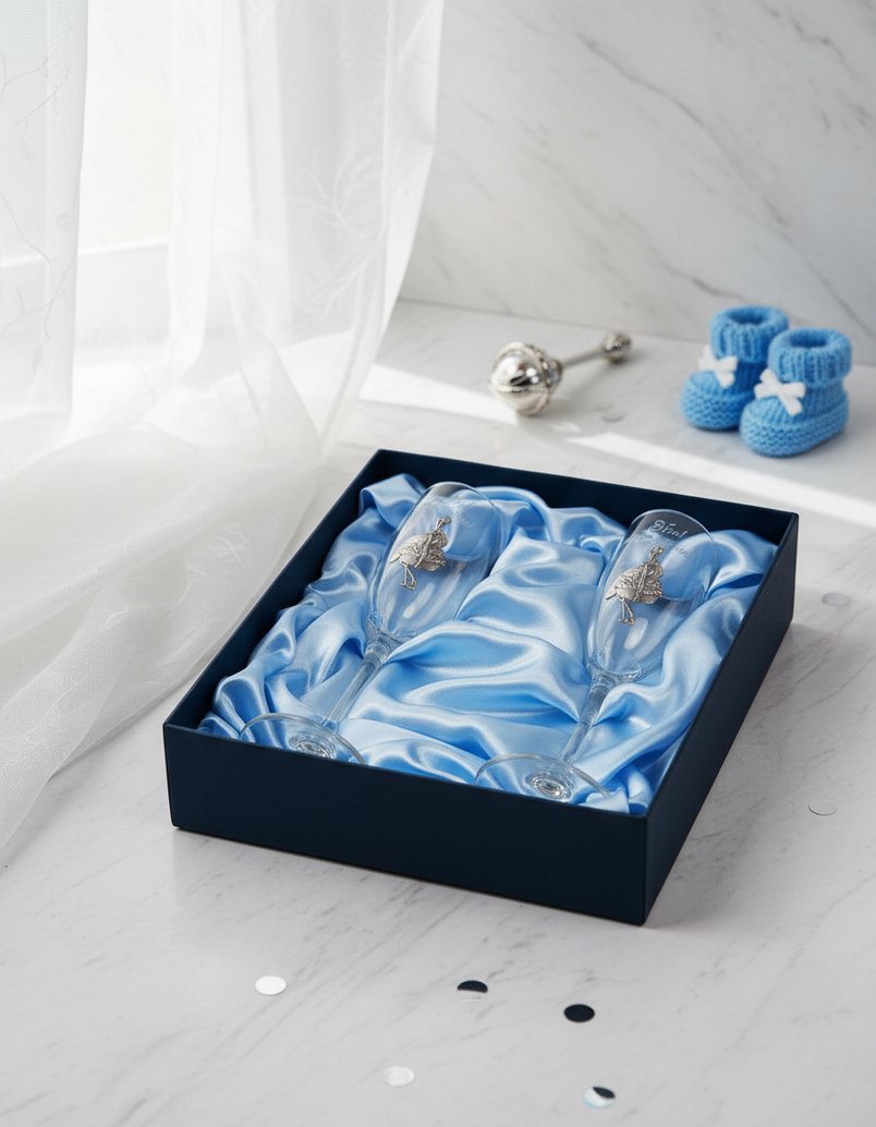 Набор фужеров для шампанского «Ура, мальчик» прекрасно подойдет для поздравления молодых родителей с рождением сына. Этим же подарком можно поблагодарить свою вторую половину за продолжение рода, чтобы выразить переполняющие чувства.