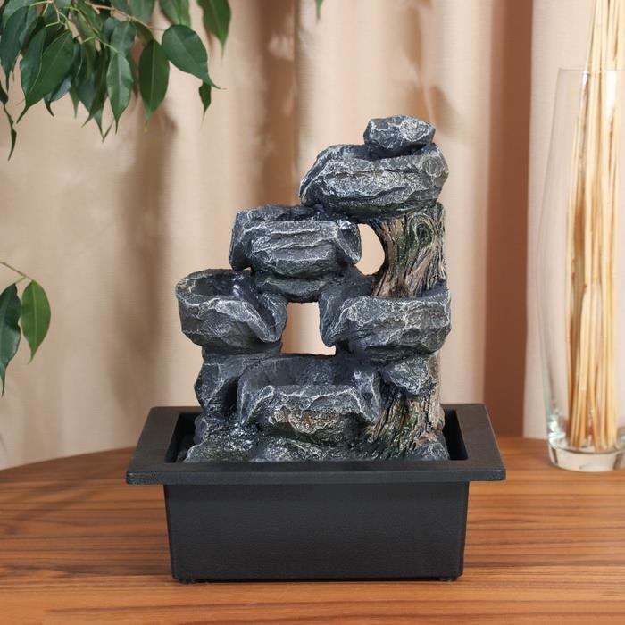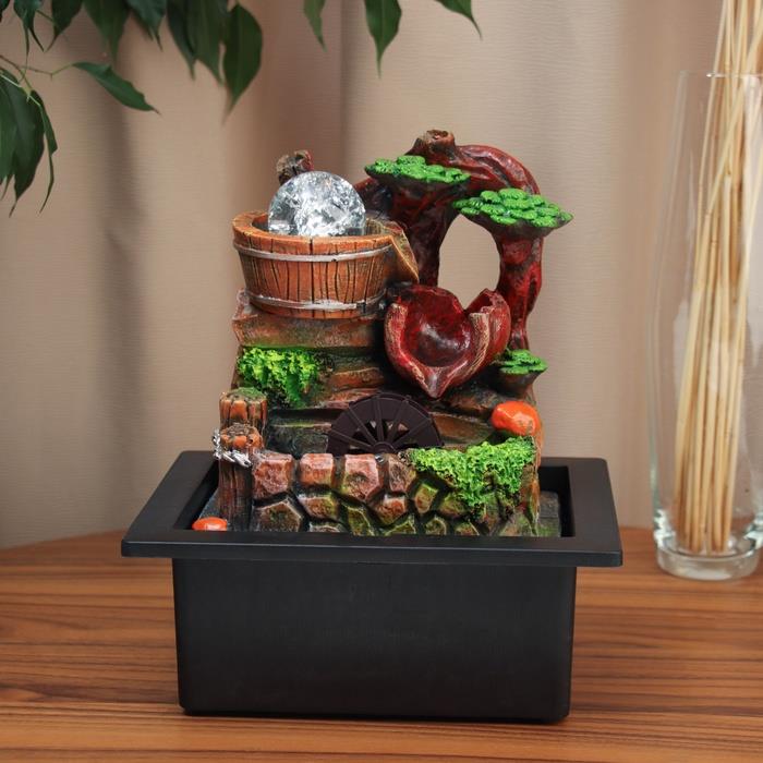 Выполнены декоративные фонтаны из практичного современного материала – полистоуна, искусно имитирующего природный камень, а отдельные элементы – из качественного фарфора и керамики. Внешний вид товаров свидетельствует о богатой дизайнерской фантазии производителя: изделия сделаны в виде фрагментов природного пейзажа или сказочных строений и героев. Если есть желание, не выходя из квартиры, слегка окунуться в мир окружающей природы или сказки, то этого можно достичь с помощью такого настольного фонтана. И недорого. В принципе, учитывая, что декоративные фонтаны предназначены для украшения домашнего интерьера, они рекомендуются в качестве подарков для взрослых, например, на день рождения или юбилей, а также на Новый год, 8 марта и к другим событиям. Но и маленьких детей можно порадовать, если купить декоративный фонтан для дома в виде умилительных сказочных гномов, которых особенно много среди фонтанов настольных интернет-магазина «Подарки от Михалыча».
