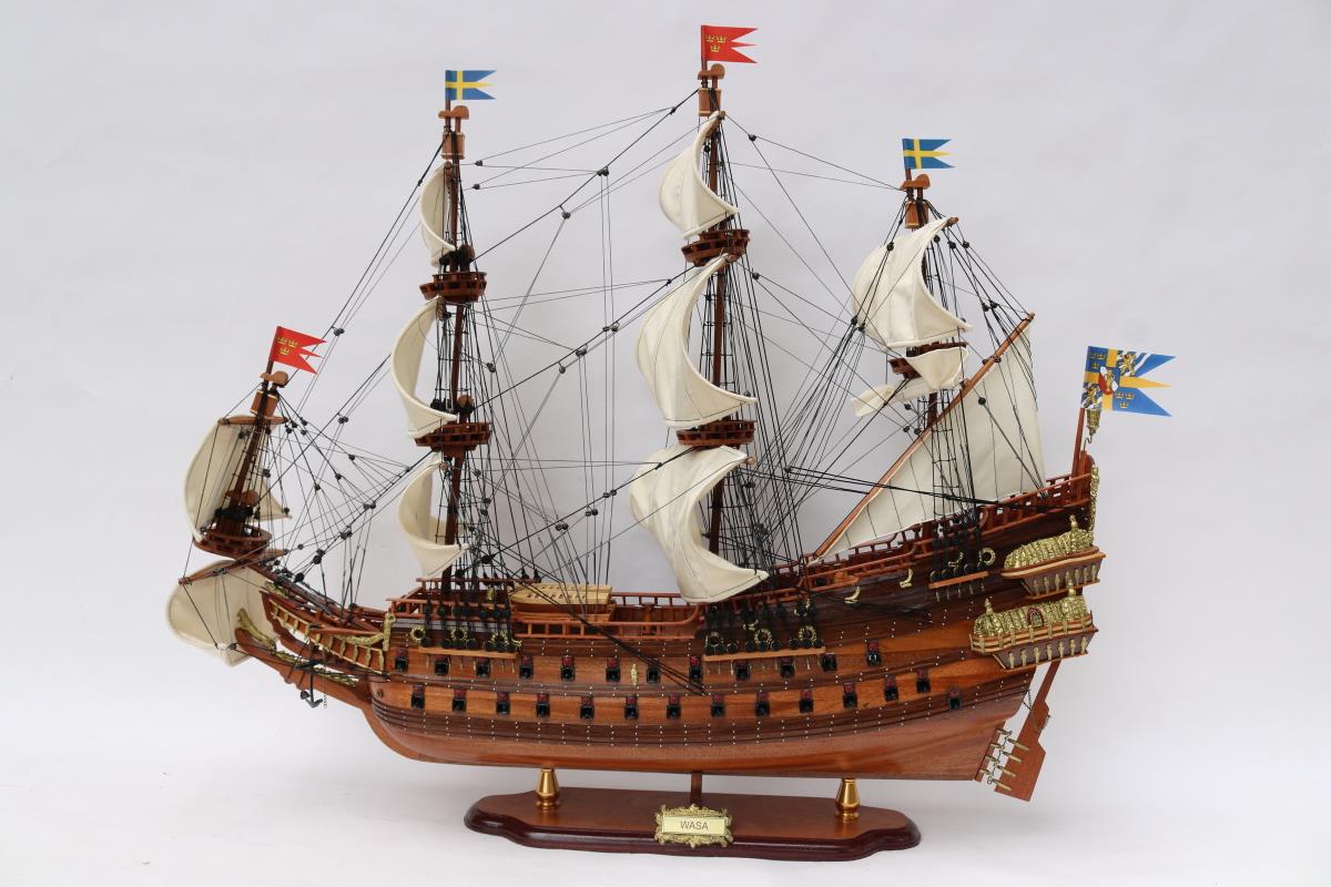 Изготовлением деревянных моделей кораблей, представленных в интернет-магазине «Подарки от Михалыча», занимаются опытные мастера известной вьетнамской компании. Работа над очередным шедевром начинается с внимательного изучения специальной литературы, в мелочах описывающей особенности судов. Это вам не дешёвые пластиковые сборные модели кораблей для детей! Наши корабли – уменьшенные масштабные копии реально существовавших судов с деревянным корпусом с форштевнем – носовым «ножом», взрезающим волны, с килем, шпангоутами, несущими на себе внешнюю обшивку судна, с ахтерштевнем, на который подвешивалось перо руля – его поворотами меняли курс корабля. Модели имеют все полагающиеся палубы, капитанский мостик, бак, полубак, ют, полуют, ну и, конечно, рангоут и такелаж с мачтами, реями, парусами – словом, всю предусмотренную для этих судов оснастку.