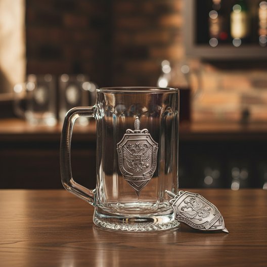 ✓ пивные кружки. Ещё один атрибут настоящего мужчины. Независимо от события, будь то футбольный матч с участием любимой команды, встреча с коллегами в уютной обстановке или просто несколько минут уединения после тяжёлого рабочего дня, потреблять пенное лучше всего из именной кружки с символикой ФСБ. Греющая душу надпись, придуманная близким человеком и бережно нанесенная на стеклянную поверхность, растопит сердце даже самого сурового мужчины.