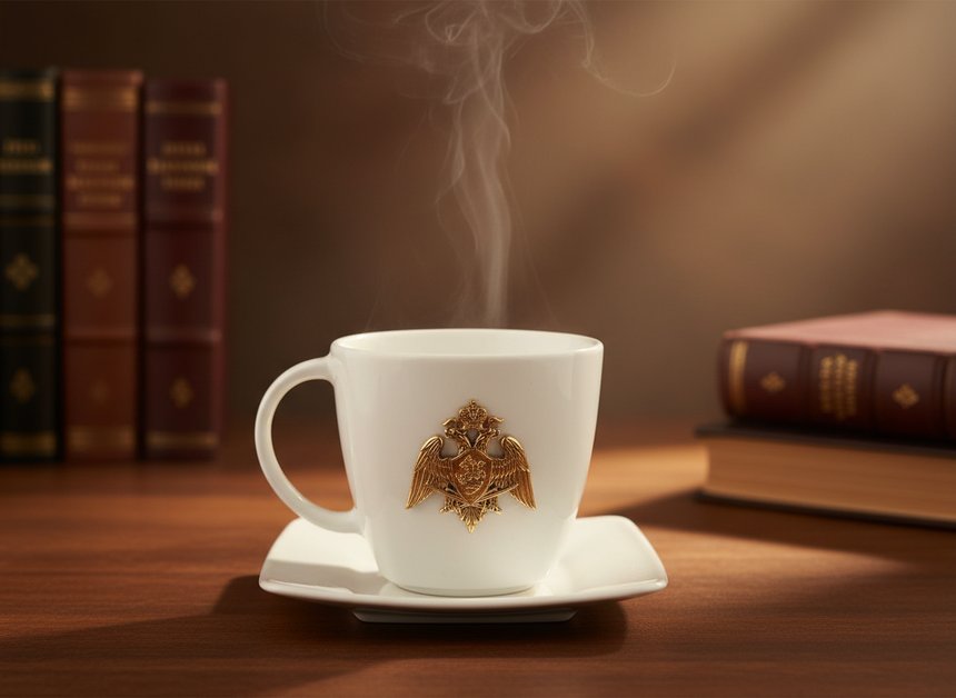 Подарочная чайная пара «Росгвардия» изготовлена опытными мастерами из высококачественного фарфора повышенной прочности. Она вмещает в себя 80 миллилитров ароматного взвара и снабжена ручкой, вполне удобной как для мужской, так и для женской ладони.