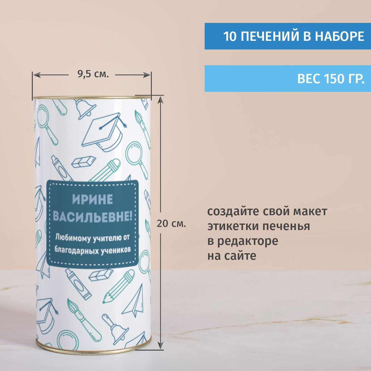 С помощью декоративного оформления подарочной упаковки печенья можно поздравить с любым праздником и сказать тёплые слова своему любимому учителю. Учитель — человек, который дарит то, чем вы будете пользоваться всю свою жизнь — знания, обязательно нужно отблагодарить его за это. Печенье хранится в стильном картонном тубусе со тёплым посланием в самом центре.