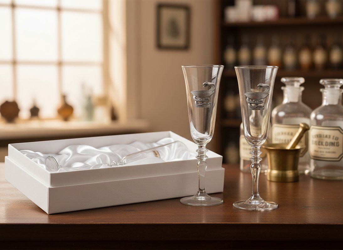 Но если забыть об этом юмористическом отступлении, то стоит обратить внимание на оригинальный дизайн и примечательную его деталь. Это оловянная накладка, выполненная в форме медицинской эмблемы. Символичный знак всегда будет определяющим для людей гуманной профессии, так что бокалы украсят любой интерьер и сервировку стола.
