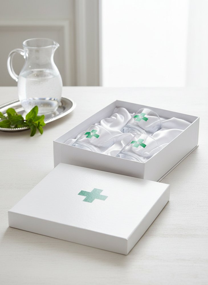 Набор бокалов для виски «Медицинский» состоит из трех емкостей, каждая из которых с максимальным удобством располагается в ладони. Они отлиты из идеально прозрачного стекла и вмещают по 275 миллилитров «огненной воды». Увеличенная толщина донышек существенно повышает устойчивость питейных аксессуаров на столешнице за счет понижения их центра тяжести.