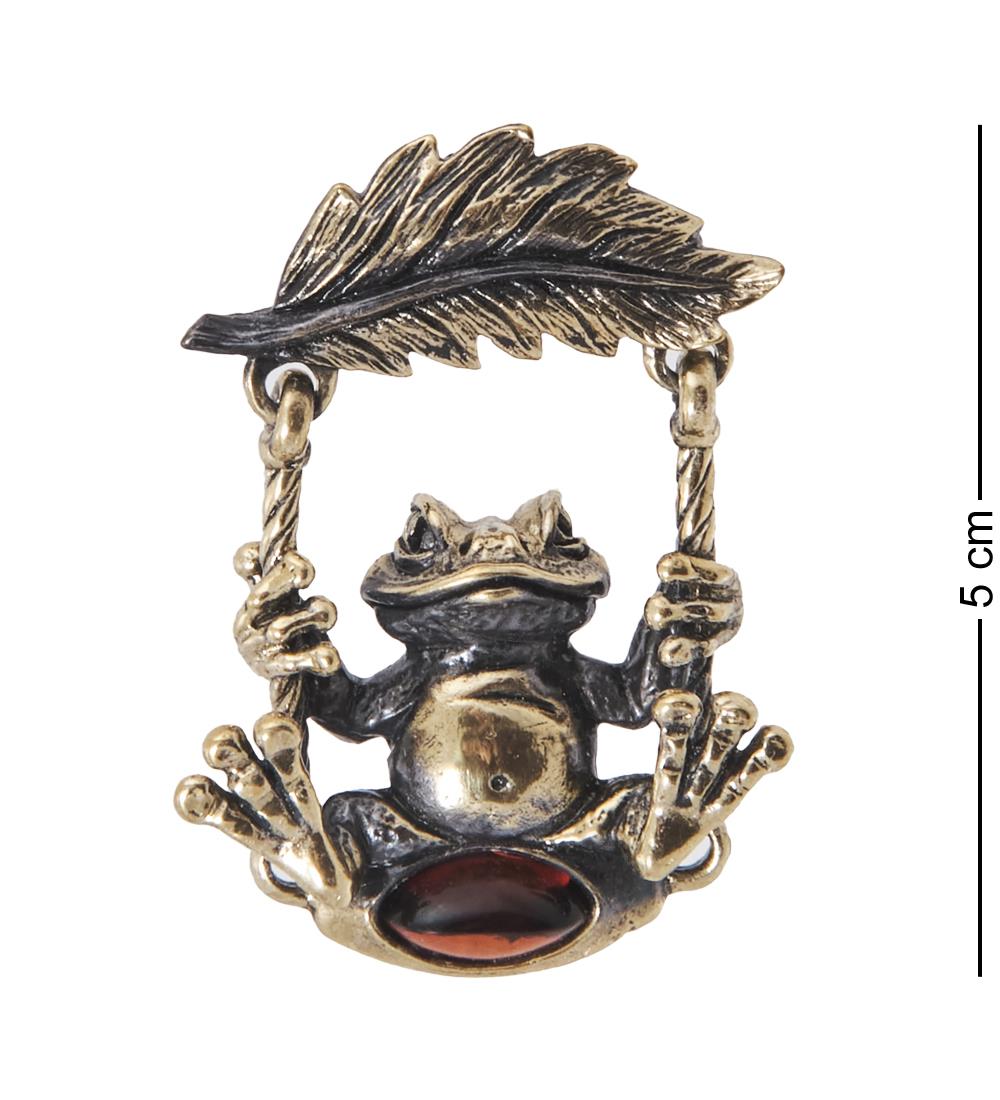 Фигурка - брошь «Лягушонок на качелях» (янтарь)
