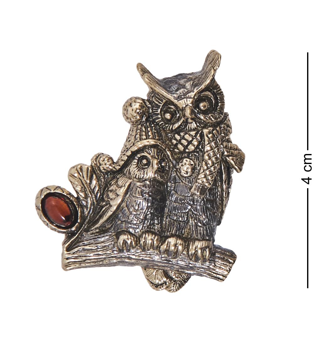 Фигурка - брошь «Зимние совушки» (янтарь)