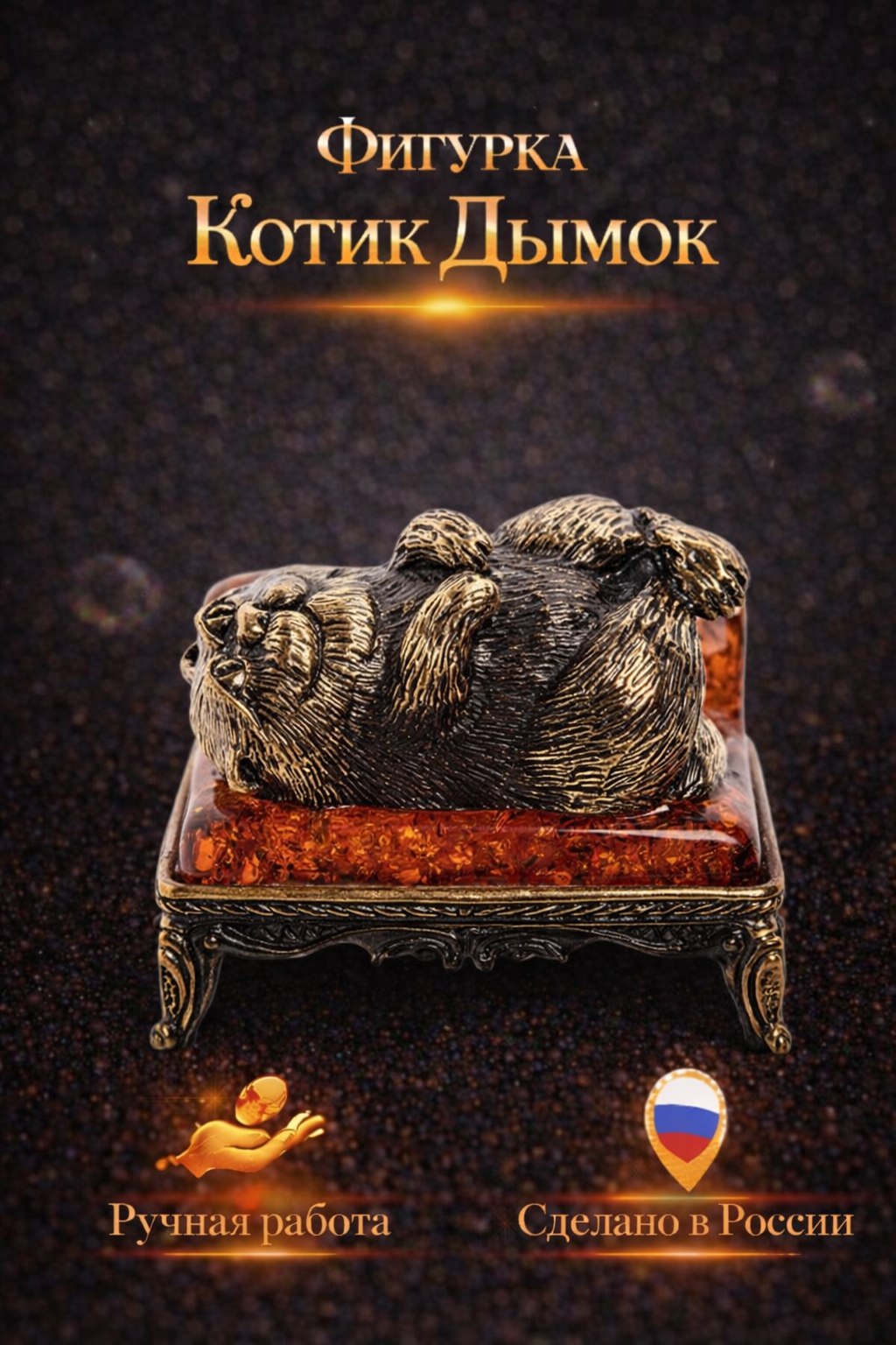 Фигурка «Котик Дымок» (янтарь)