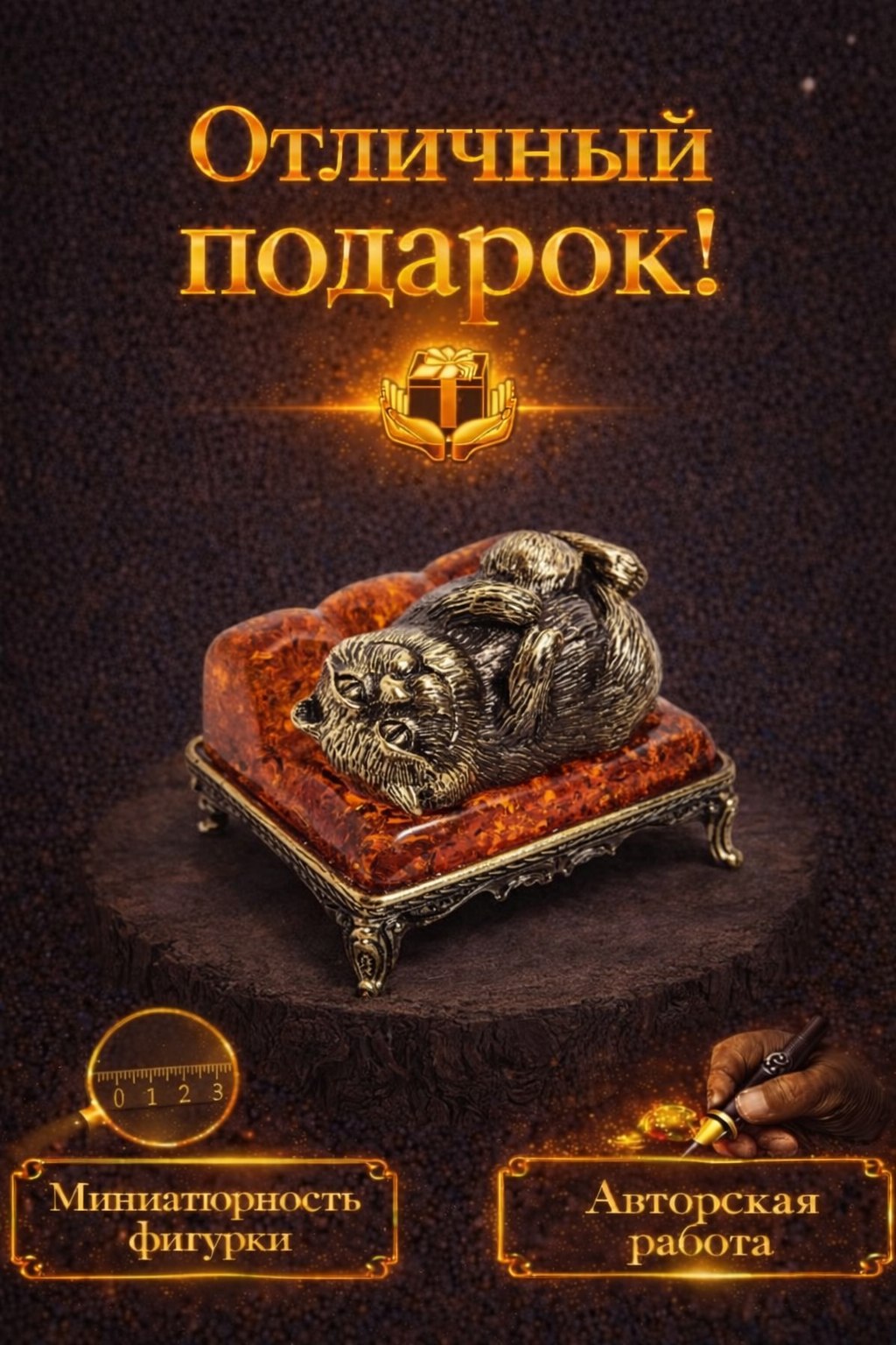 - Фигурка Котик Дымок (янтарь)