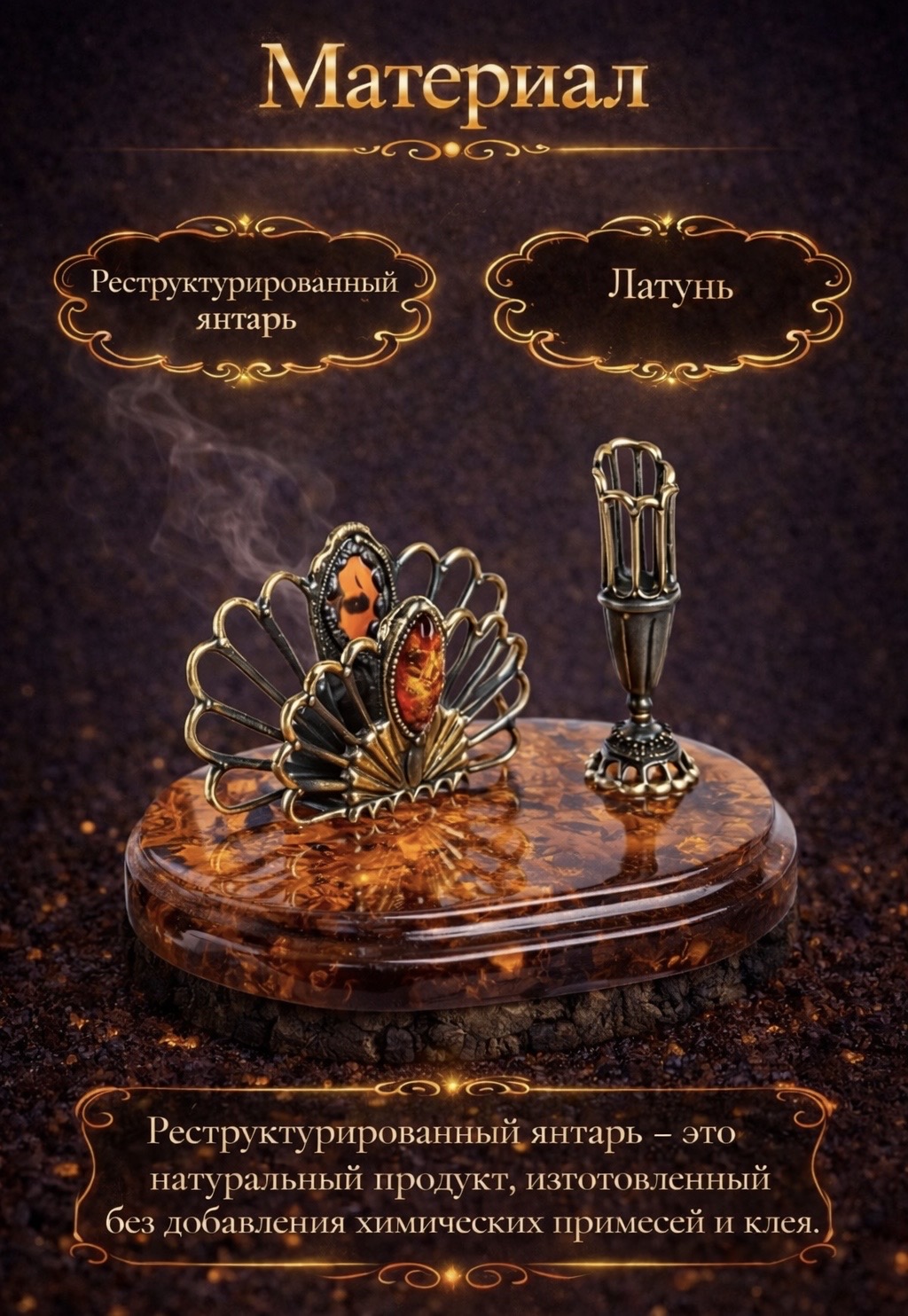 | Материал | Латунь, янтарь |