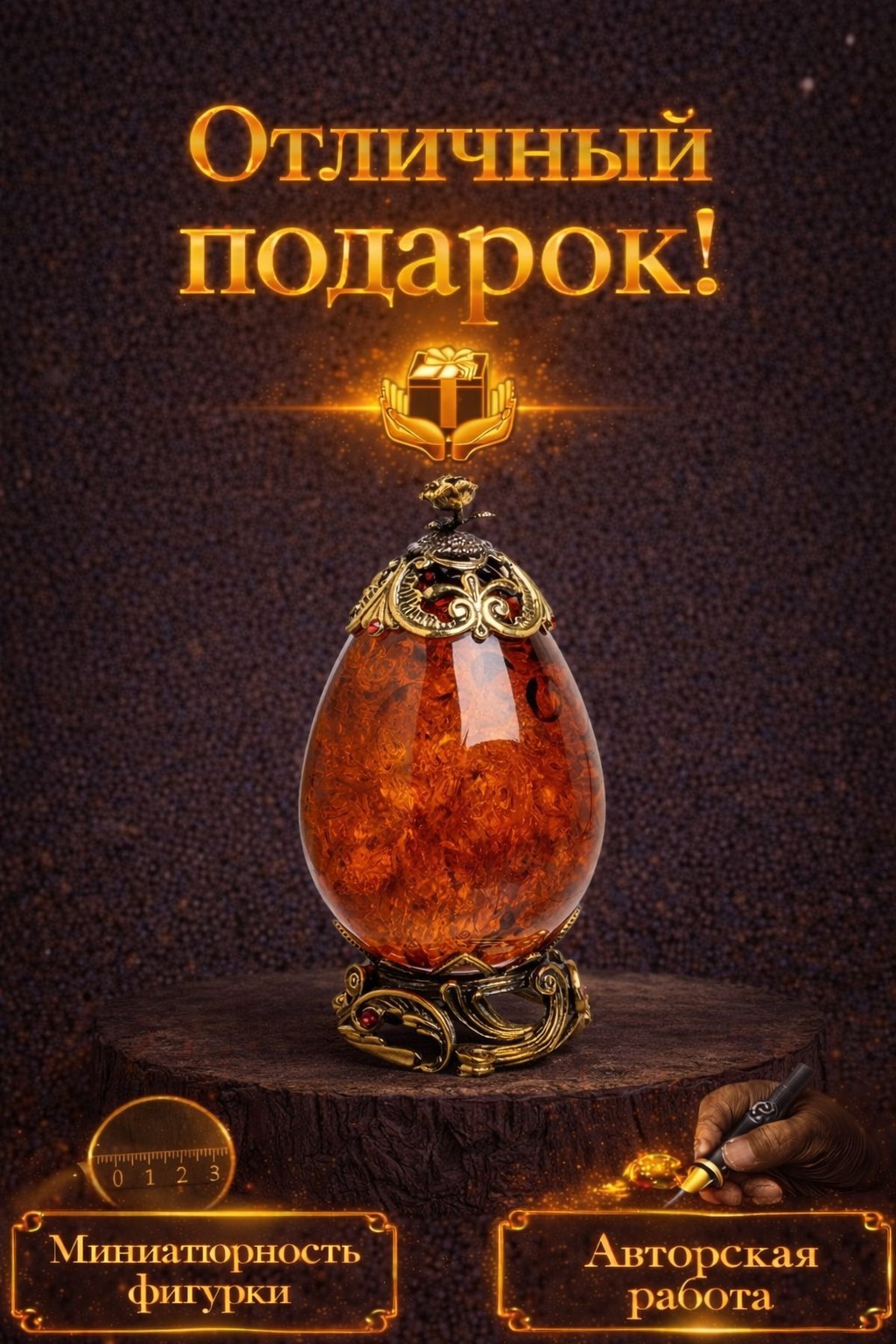 Фигурка «Розочка на яйце» (янтарь)