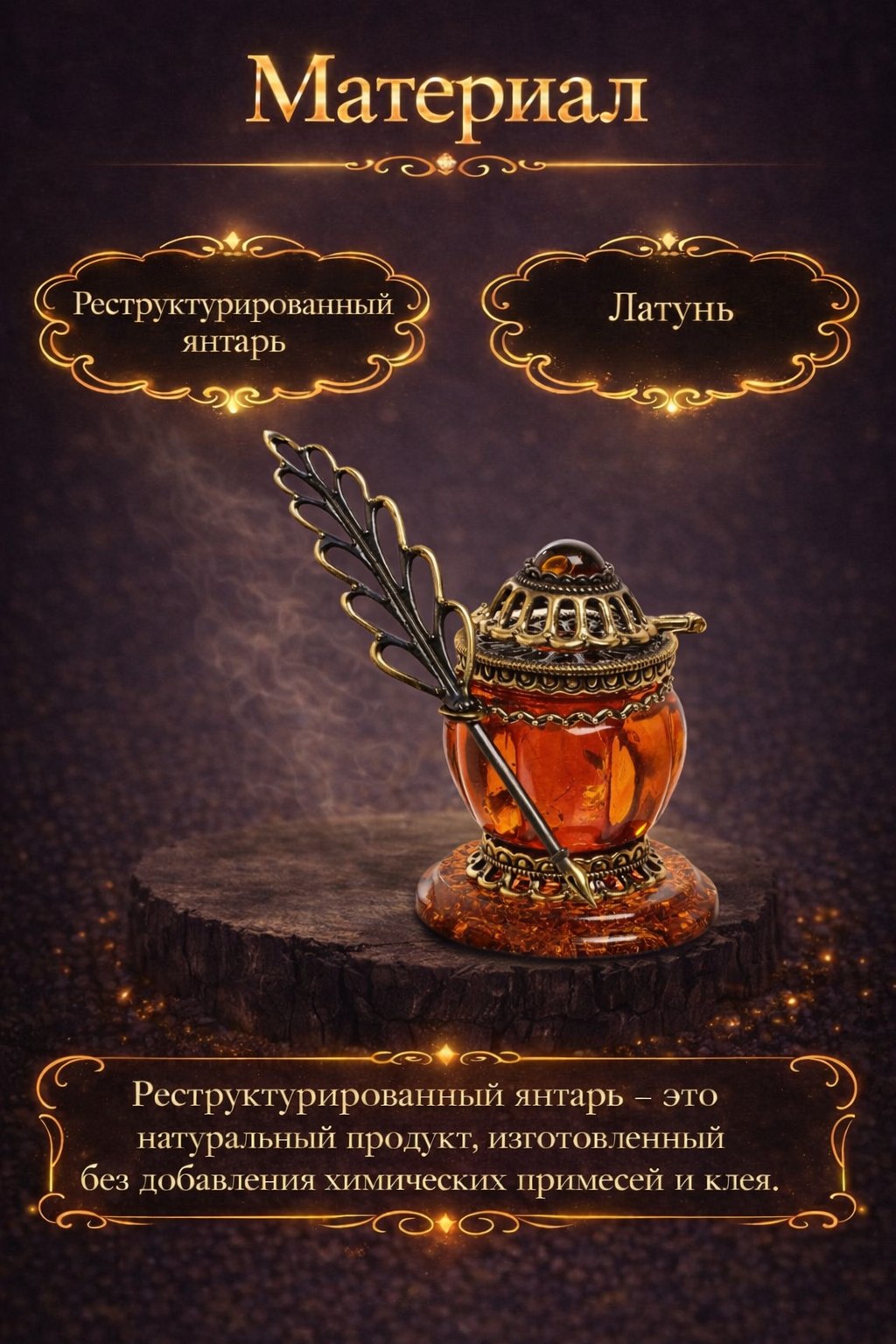 | Материал | Латунь, янтарь |