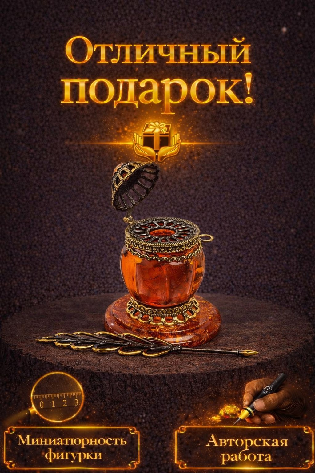 Фигурка «Старинная чернильница» (янтарь)
