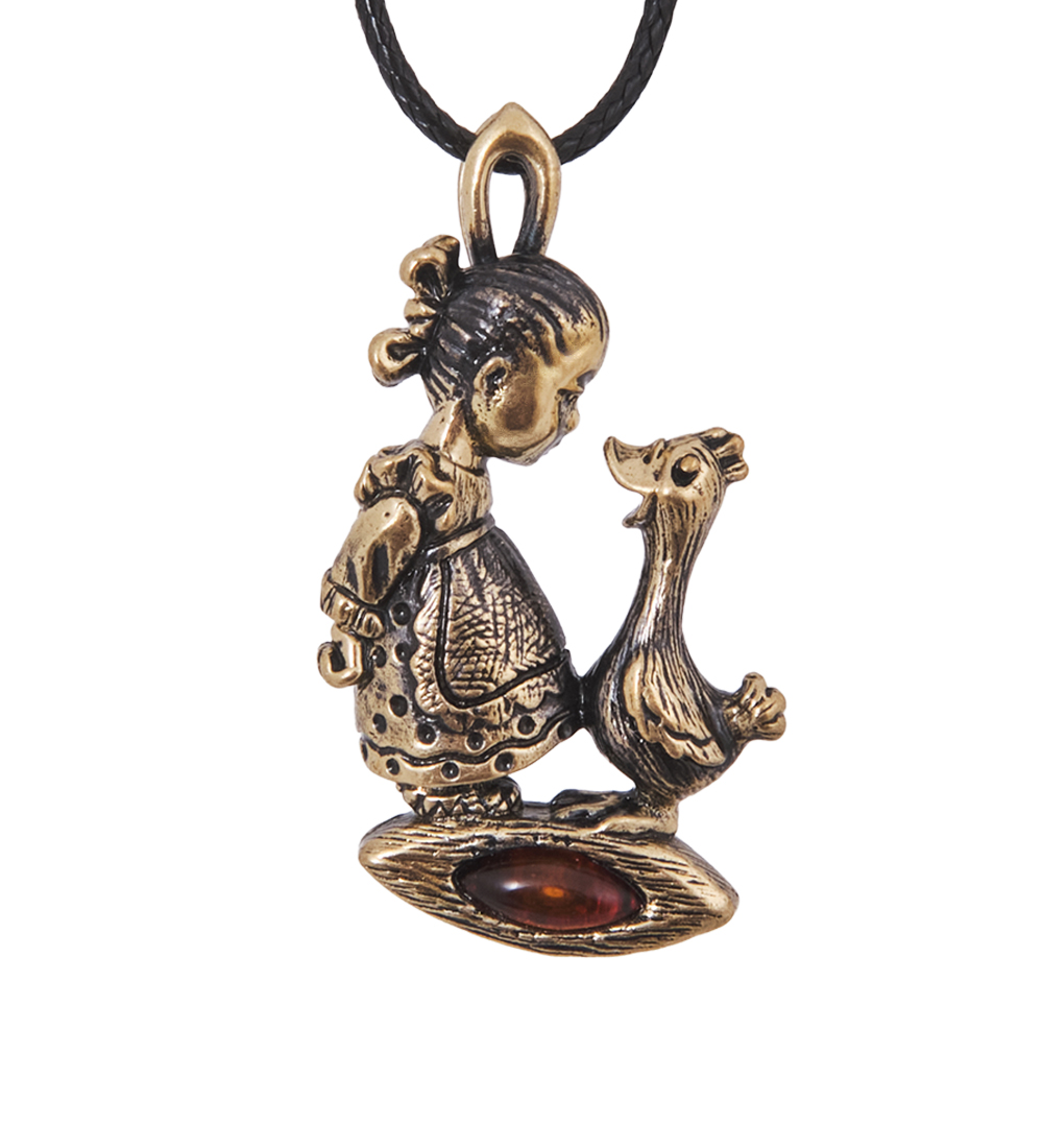 - Подвеска Девочка с уткой (янтарь)