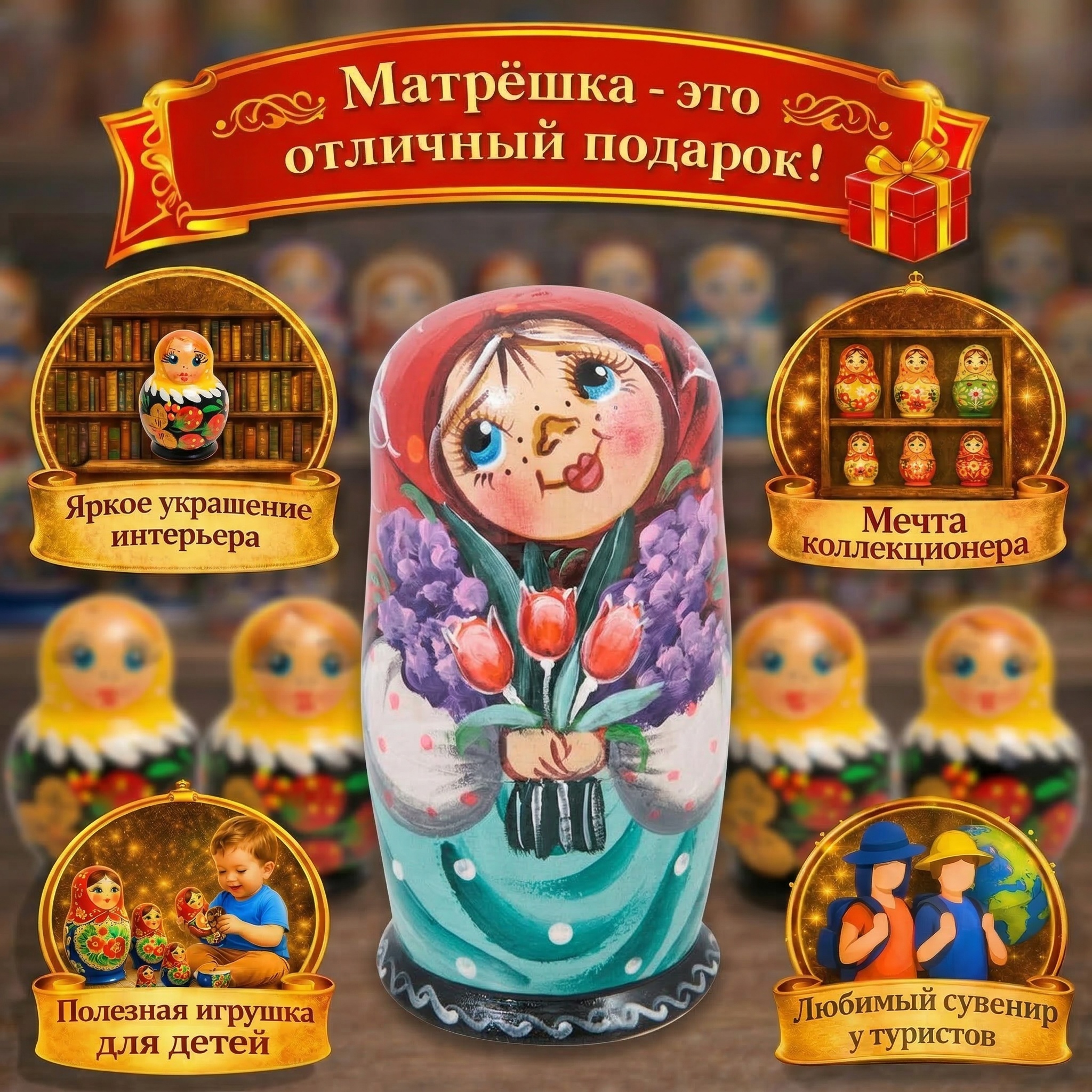 Матрешка «Софья с тюльпанами»