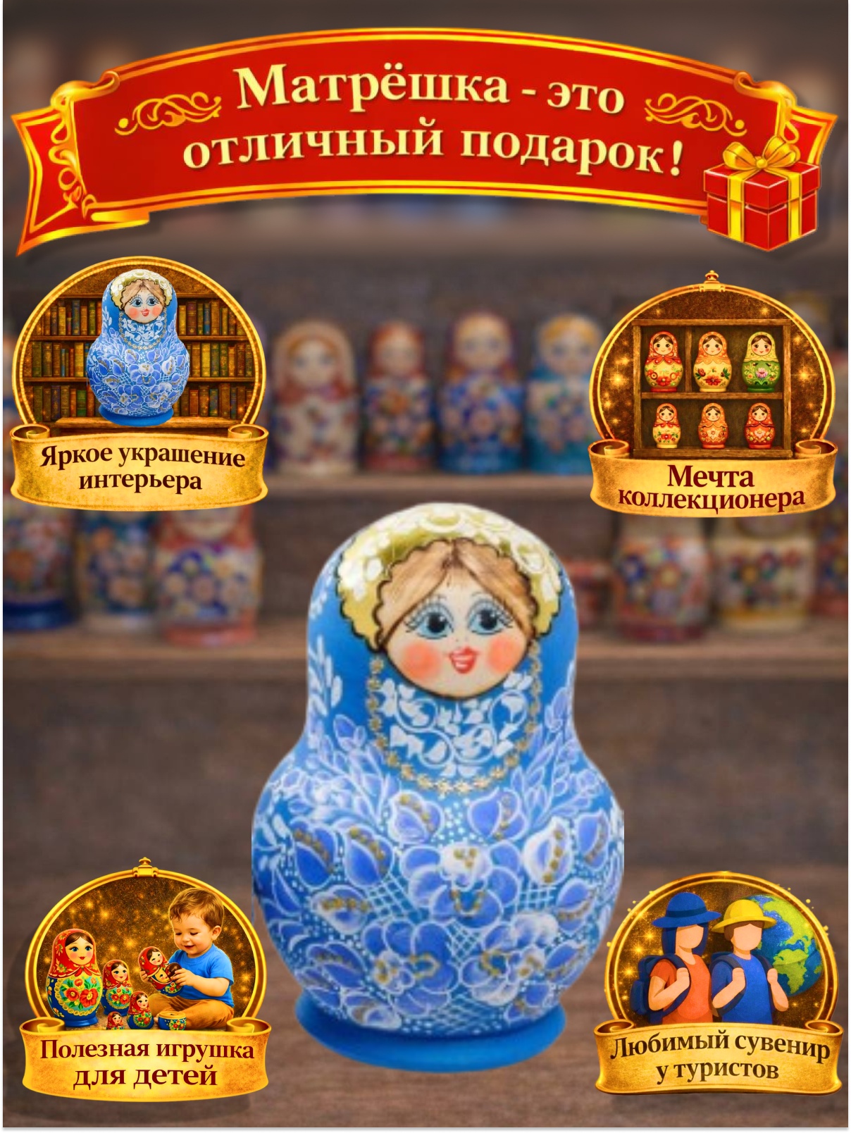 Матрешка «Аленка лазурная»