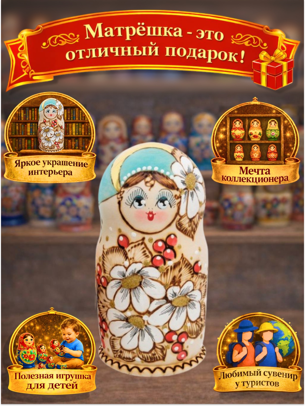 Матрешка Букет ромашек
