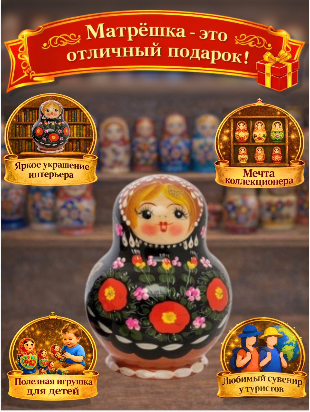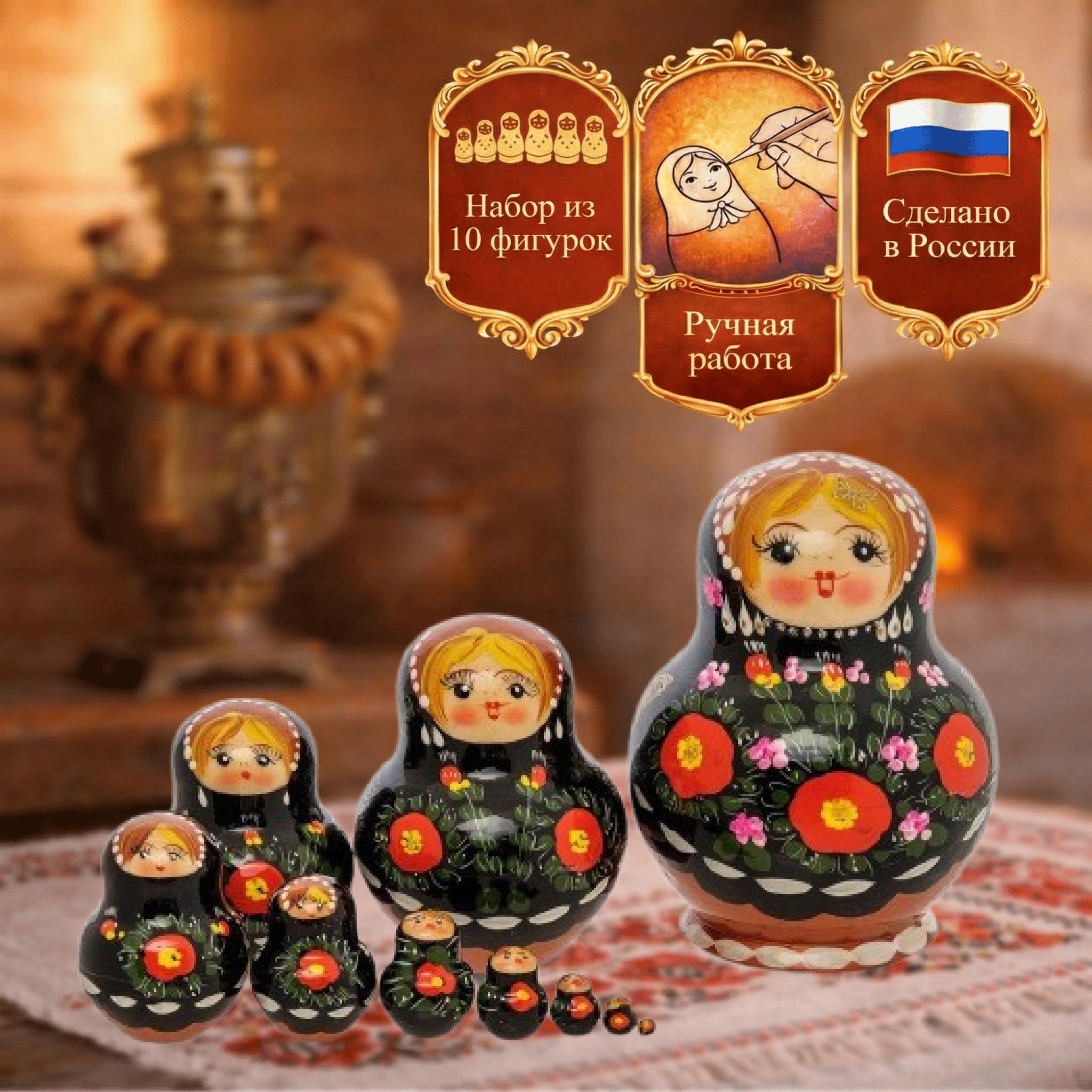 Матрешка Три цветка