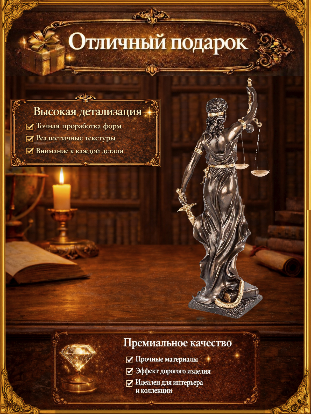Статуэтка Фемида - богиня правосудия (люкс)