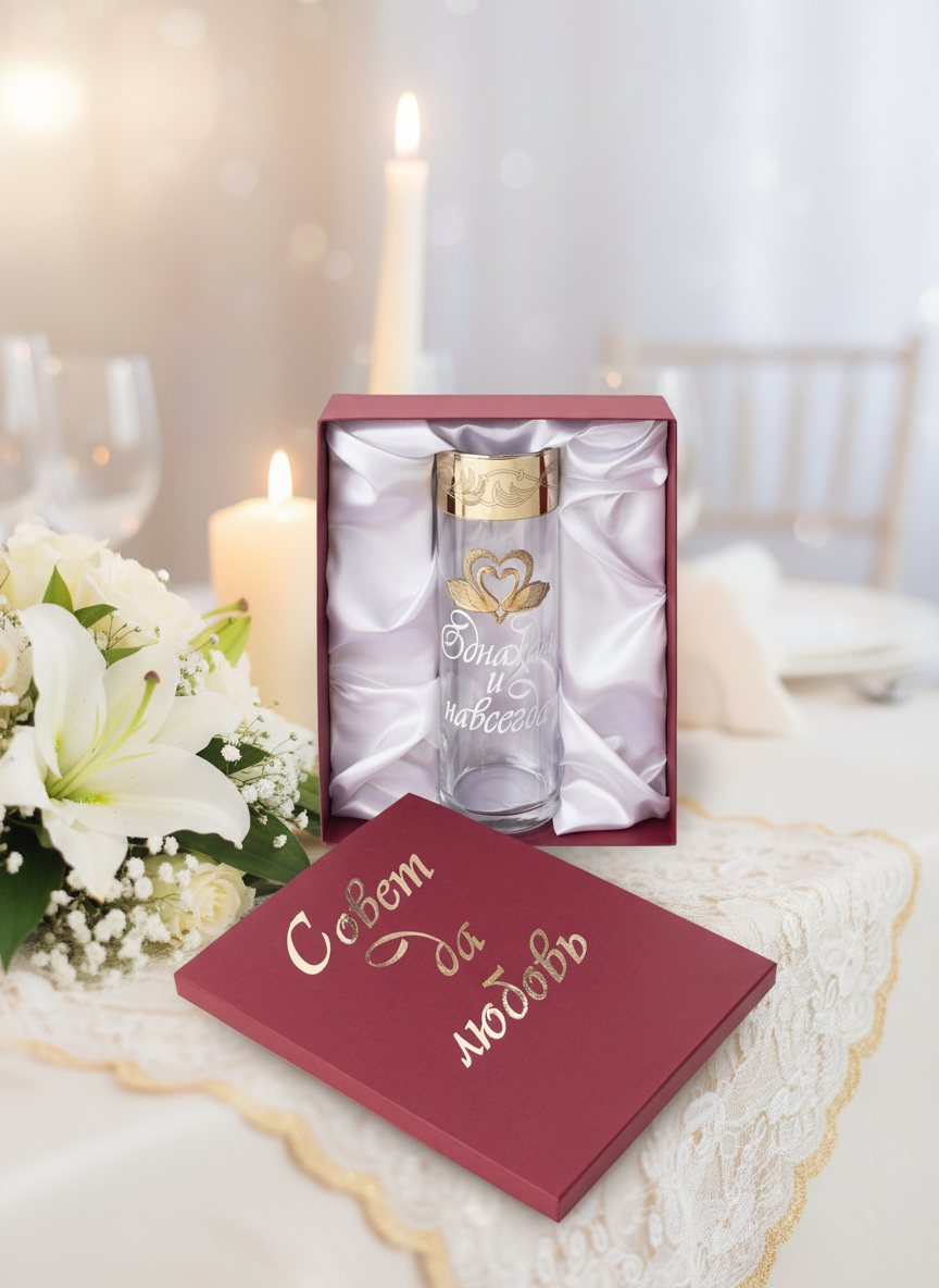 Стеклянная ваза «Однажды и навсегда» — роскошный подарок, с которым жизнь супругов станет ярче, ведь теперь будет ещё один повод, чтобы в доме всегда были потрясающие букеты.