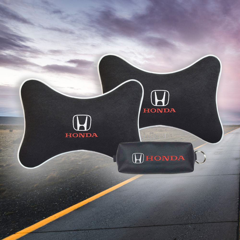 Подушка на подголовник HONDA из черноговелюра подарит расслабление уставшим мышцам, поможет увеличить обзор дороги и станет оригинальным декором в автомобильном салоне.