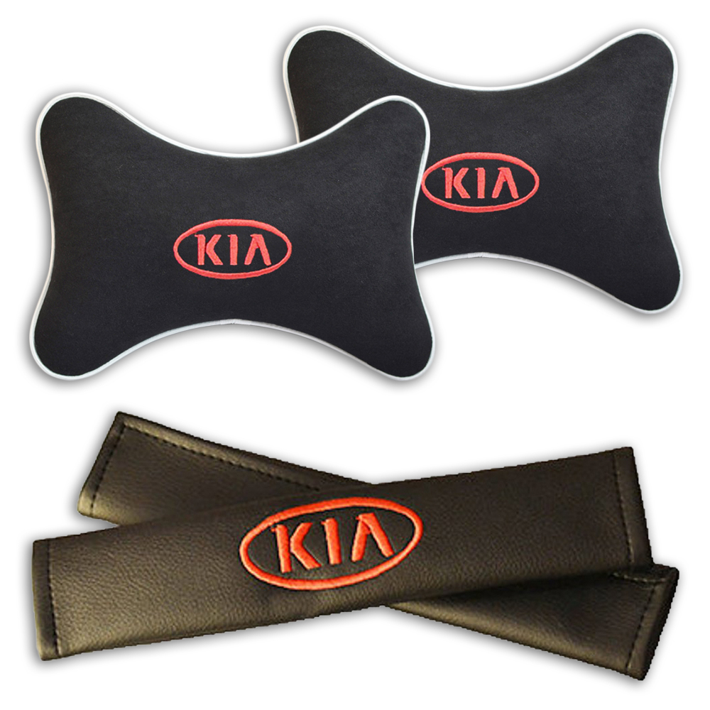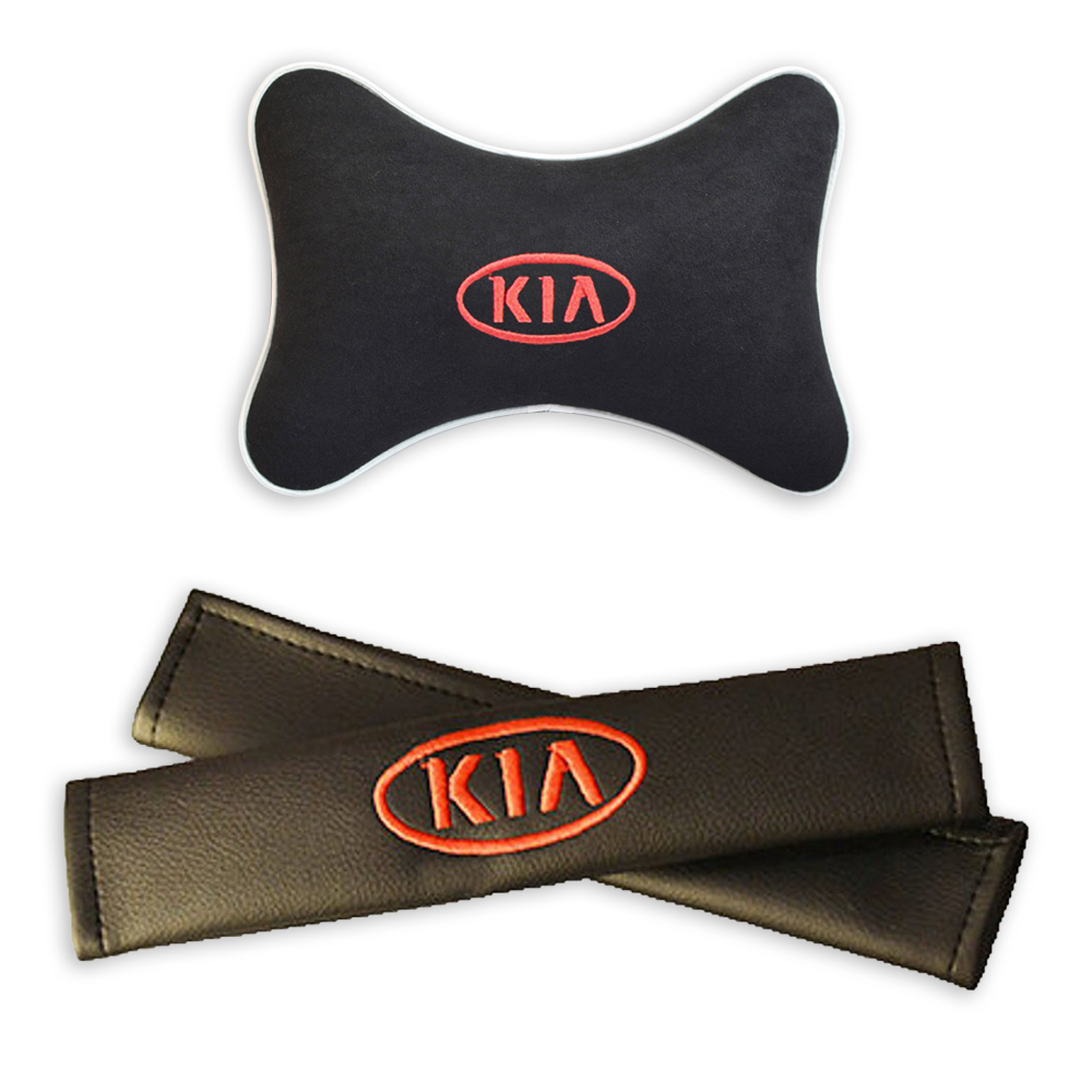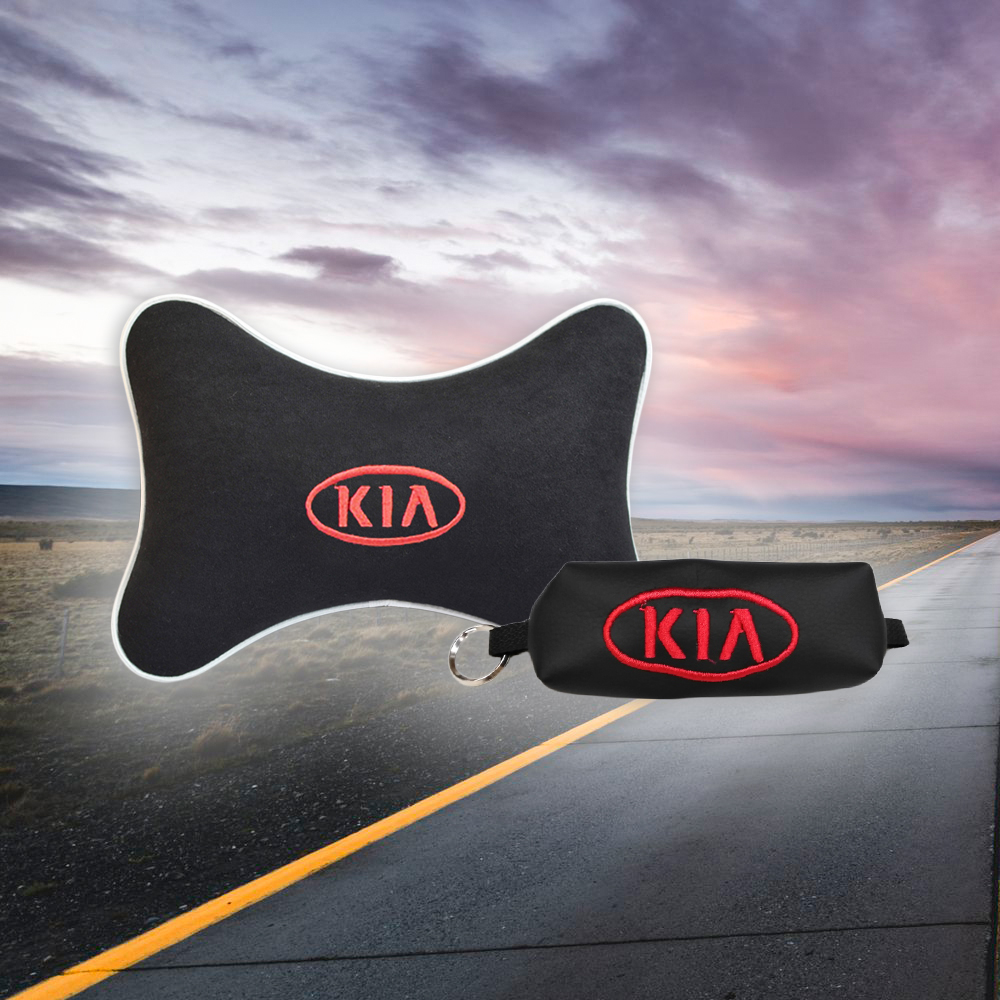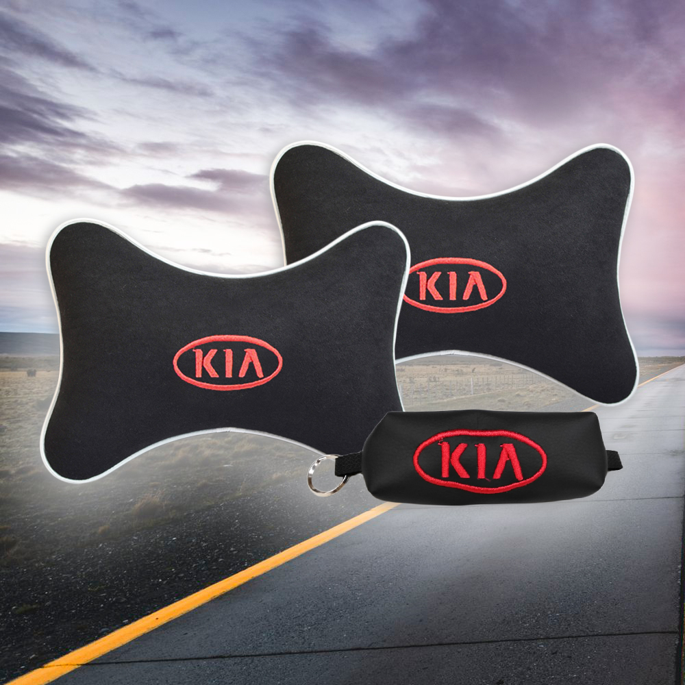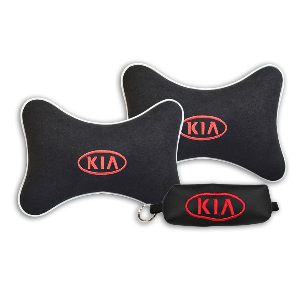 Подушка на подголовник KIA из черноговелюра подарит расслабление уставшим мышцам, поможет увеличить обзор дороги и станет оригинальным декором в автомобильном салоне.