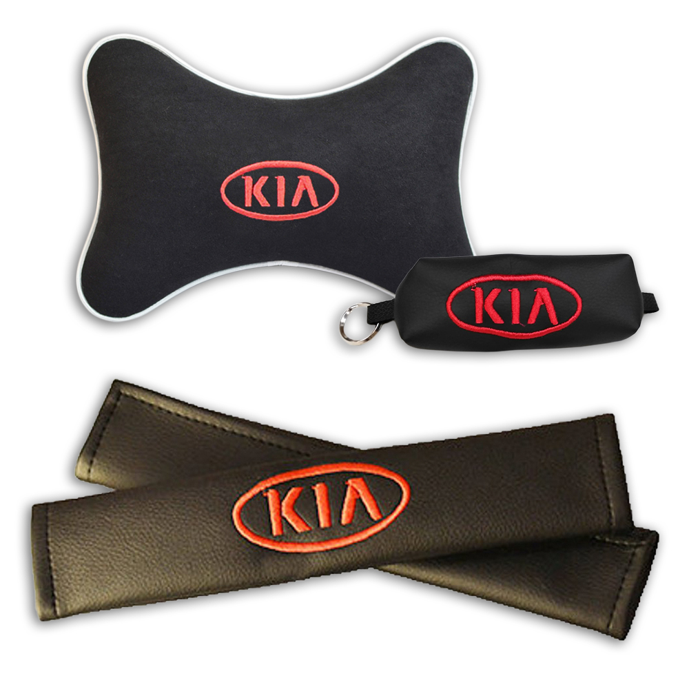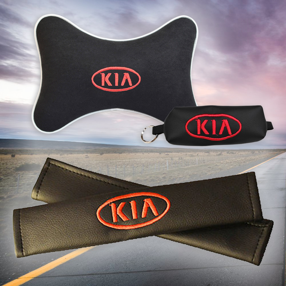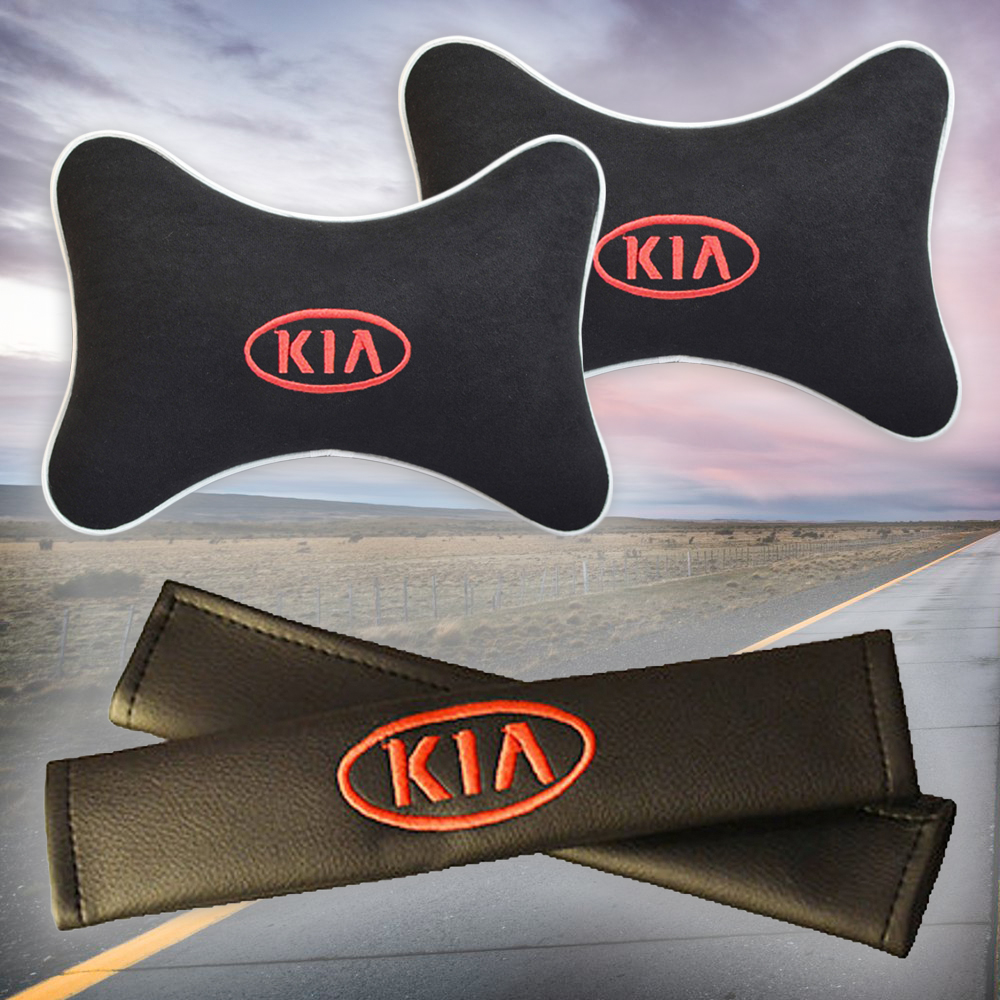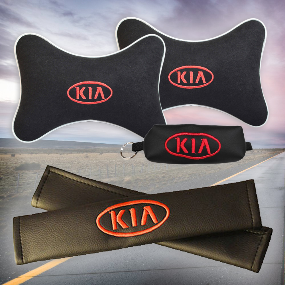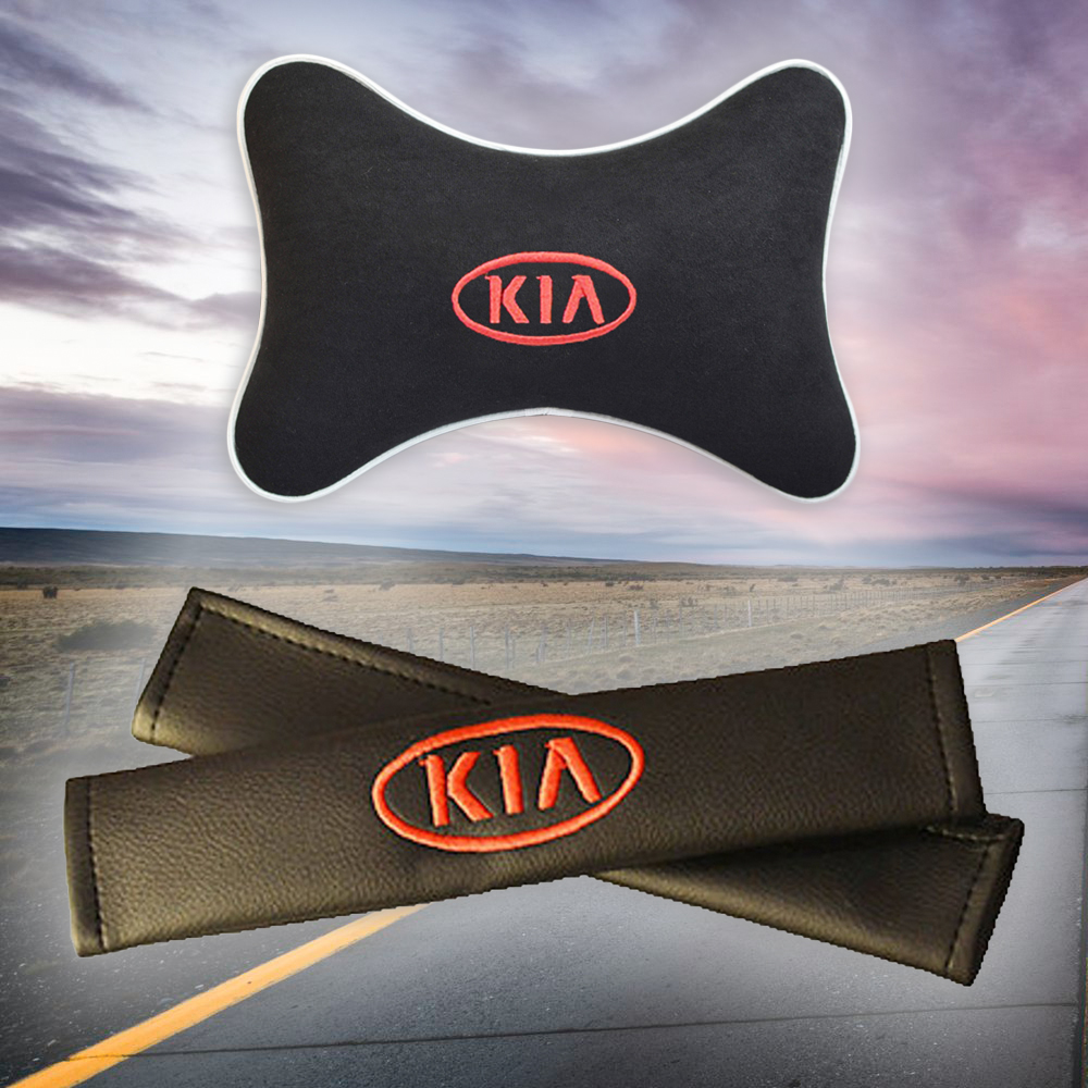 Подушка на подголовник KIA из черноговелюра подарит расслабление уставшим мышцам, поможет увеличить обзор дороги и станет оригинальным декором в автомобильном салоне.