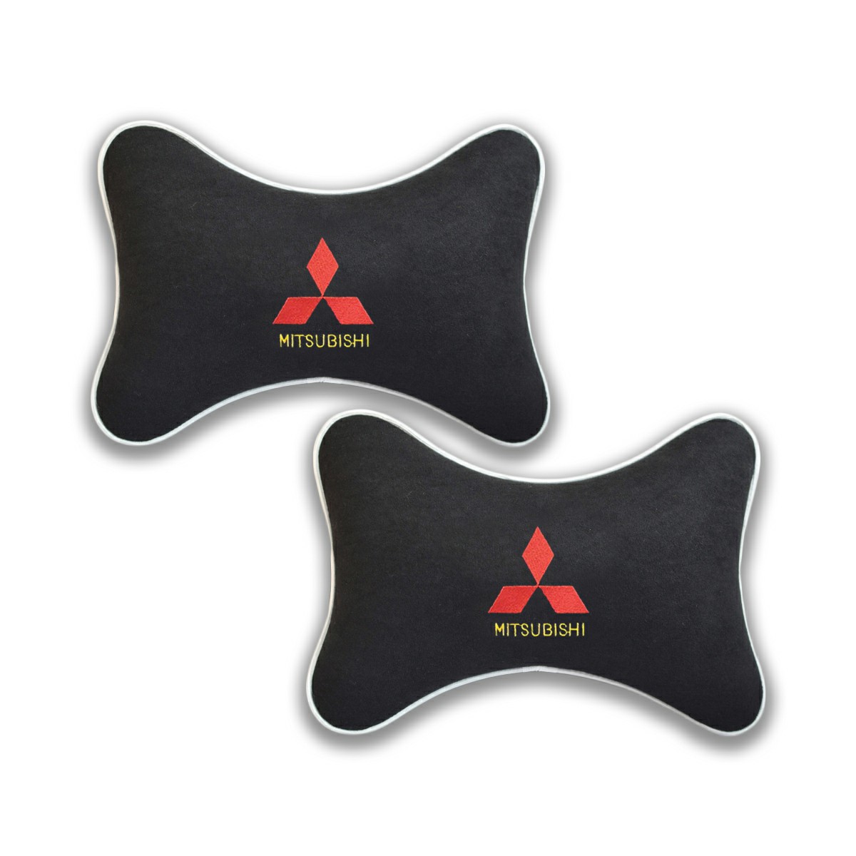 Малый комплект подушек на подголовник Mitsubishi (из чёрного велюра)