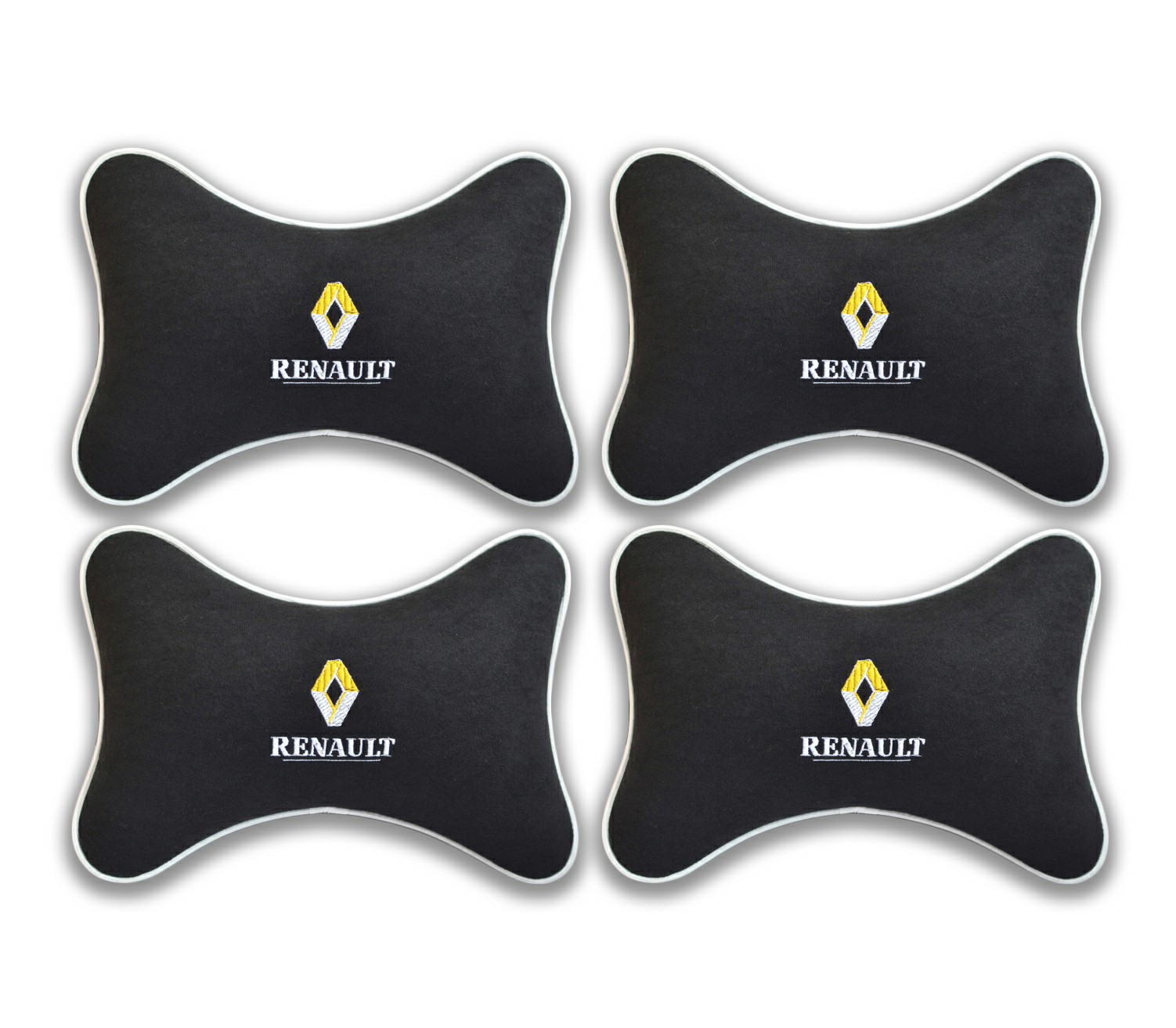 Сочетание полезной составляющей и превосходного внешнего вида — еще одно преимущество рекомендованного набора. Подушки выполнены в едином благородном чёрном цвете. Пастельный оттенок идеально впишется в любой салон авто, украсит его и придаст особый шарм. Индивидуальность презента подчеркивает автологотип Renault в центре каждой подушки. Одариваемый сразу заметит этот элемент декора, поскольку каждому автовладельцу дорого «имя» его любимицы.